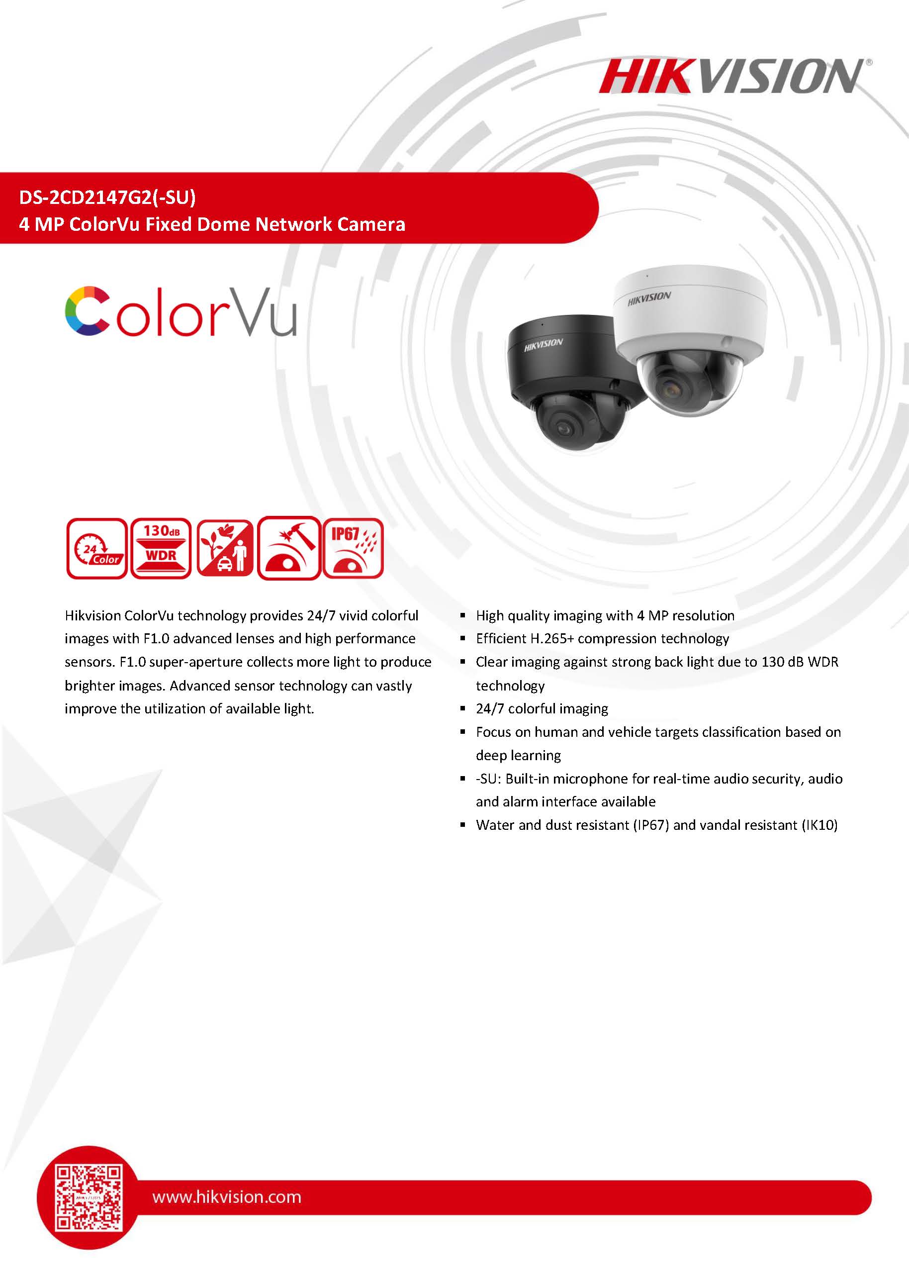 HIKVISION 4 MP ColorVu Fixed Dome Network Camera Model DS-2CD2147G2-L(SU) ขอราคาพิเศษสำหรับงานโครงการ ติดต่อฝ่ายขาย Line ID : @aimonline ฝ่ายขายโทร: 063-879-9917 (สินค้ายังไม่รวมภาษีมูลค่าเพิ่ม, ค่าขนส่ง) เช็คสต๊อกล่าสุดสินค้าก่อนสั่งซื้อ ราคายังไม่รวมค่าติดตั้ง #NP24