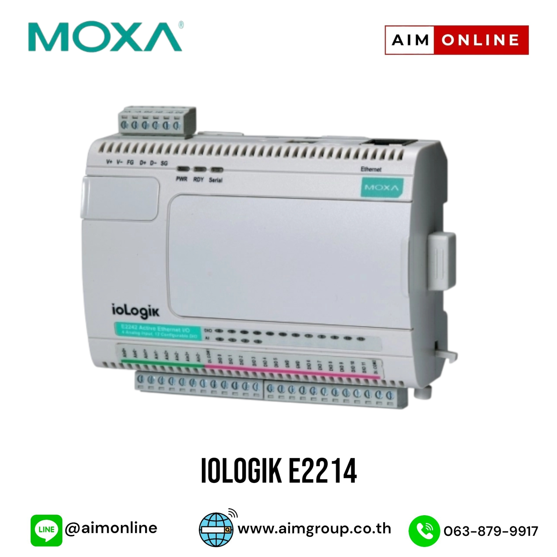 MOXA Universal Controllers & I/Os Model: ioLogik E2214 Universal controller, 6 DIs, 6 relays, Click&Go, -10 to 60°C operating temperature ขอราคาพิเศษสำหรับงานโครงการ ติดต่อฝ่ายขาย Line ID : @aimonline ฝ่ายขายโทร: 063-879-9917 ( สินค้ายังไม่รวมภาษีมูลค่าเพิ่ม, ค่าขนส่ง ) เช็คสต๊อกล่าสุดสินค้าก่อนสั่งซื้อ ราคายังไม่รวมค่าติดตั้ง