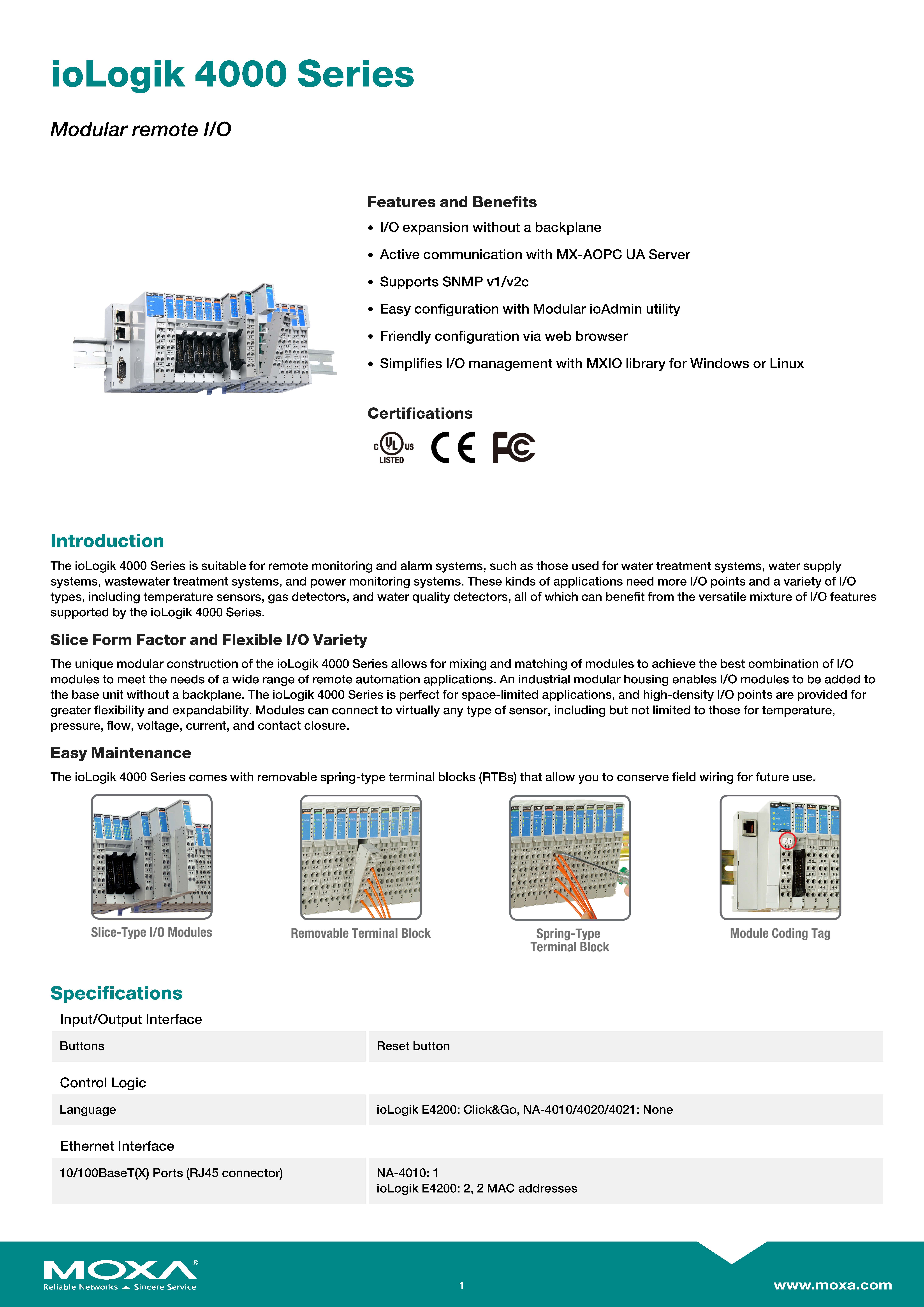MOXA Modular remote I/O Model: ioLogik E4200 ขอราคาพิเศษสำหรับงานโครงการ ติดต่อฝ่ายขาย Line ID : @aimonline ฝ่ายขายโทร: 063-879-9917 ( สินค้ายังไม่รวมภาษีมูลค่าเพิ่ม, ค่าขนส่ง ) เช็คสต๊อกล่าสุดสินค้าก่อนสั่งซื้อ ราคายังไม่รวมค่าติดตั้ง