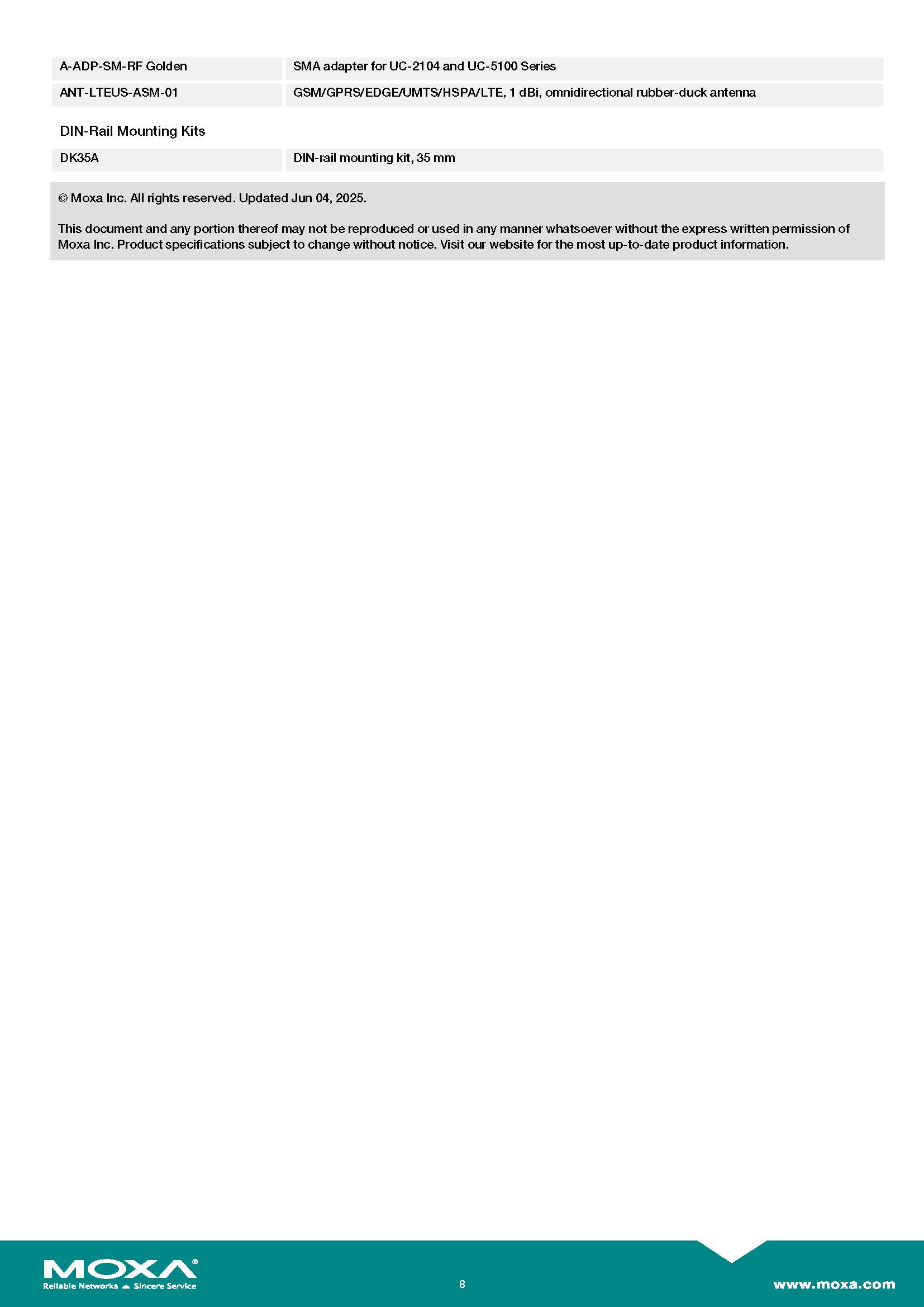 MOXA Arm-Based Computers Model:UC-2101-LX Mini RISC-based embedded computer with 600 MHz processor, 1 serial port and 1 LAN port ขอราคาพิเศษสำหรับงานโครงการ ติดต่อฝ่ายขาย Line ID : @aimonline ฝ่ายขายโทร: 063-879-9917 ( สินค้ายังไม่รวมภาษีมูลค่าเพิ่ม, ค่าขนส่ง ) เช็คสต๊อกล่าสุดสินค้าก่อนสั่งซื้อ ราคายังไม่รวมค่าติดตั้ง