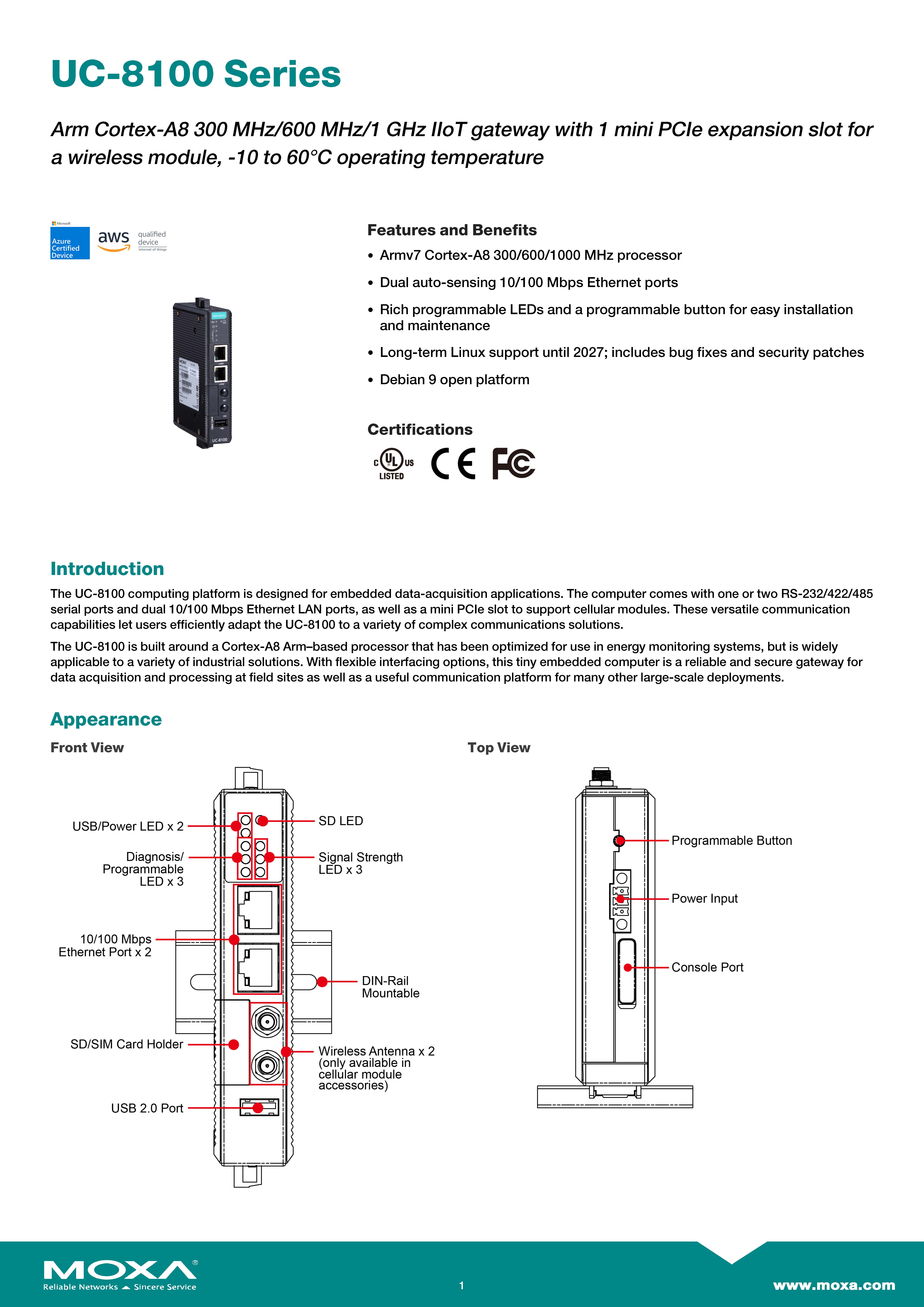MOXA Arm-Based Computers Model: UC-8131-LX Arm-based wireless-enabled DIN-rail industrial computer with 300 MHz CPU, 2 Ethernet, 1 Serial port ขอราคาพิเศษสำหรับงานโครงการ ติดต่อฝ่ายขาย Line ID : @aimonline ฝ่ายขายโทร: 063-879-9917 ( สินค้ายังไม่รวมภาษีมูลค่าเพิ่ม, ค่าขนส่ง ) เช็คสต๊อกล่าสุดสินค้าก่อนสั่งซื้อ ราคายังไม่รวมค่าติดตั้ง