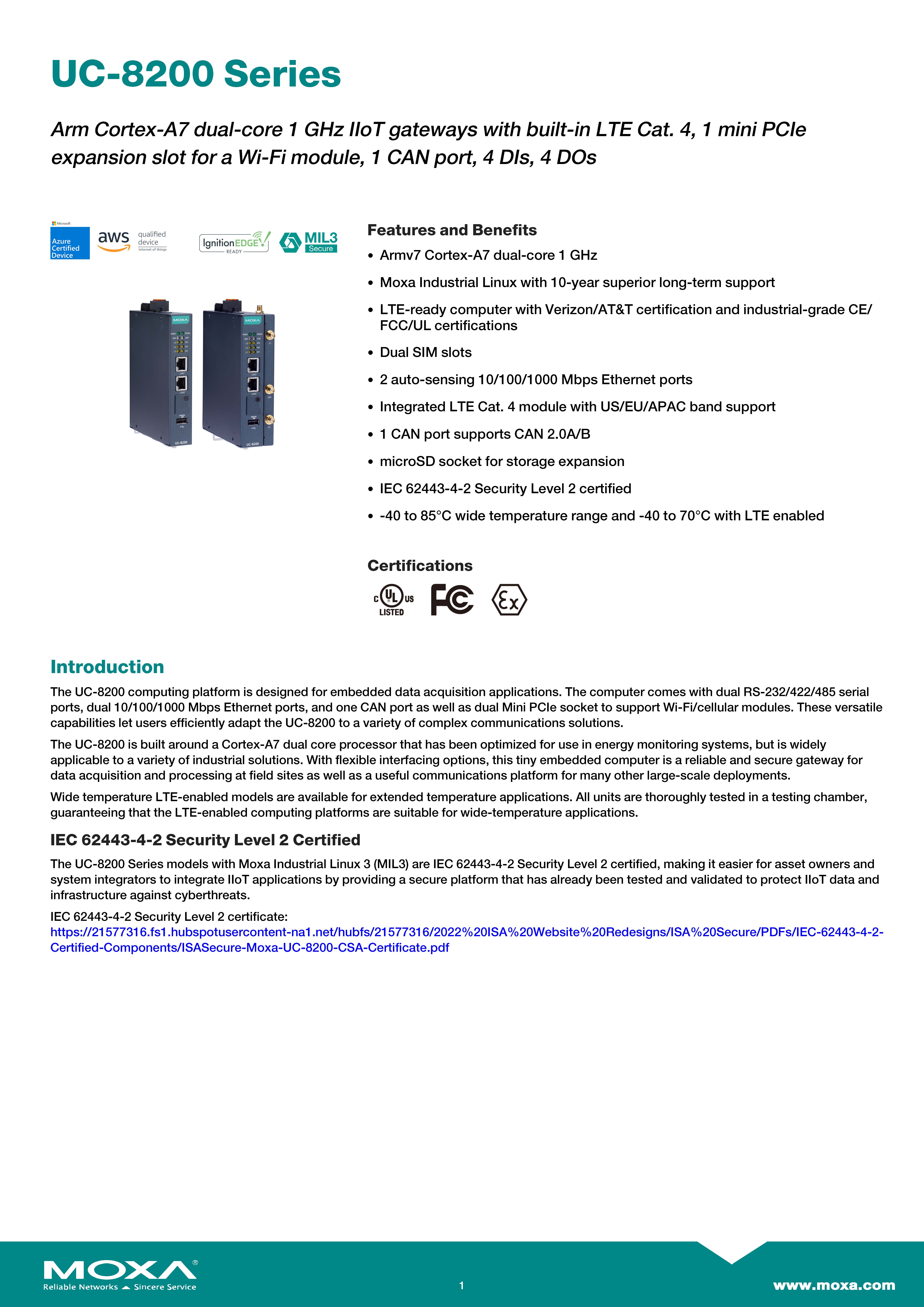 MOXA Arm-Based Computers Model: UC-8220-T-LX Arm Cortex-A7 dual-core 1 GHz IIoT gateway with 2 expansion slots for a Wi-Fi and LTE module, 1 CAN port, 4 DIs, 4 DOs, -40 to 85°C operating temperature ขอราคาพิเศษสำหรับงานโครงการ ติดต่อฝ่ายขาย Line ID : @aimonline ฝ่ายขายโทร: 063-879-9917 ( สินค้ายังไม่รวมภาษีมูลค่าเพิ่ม, ค่าขนส่ง ) เช็คสต๊อกล่าสุดสินค้าก่อนสั่งซื้อ ราคายังไม่รวมค่าติดตั้ง