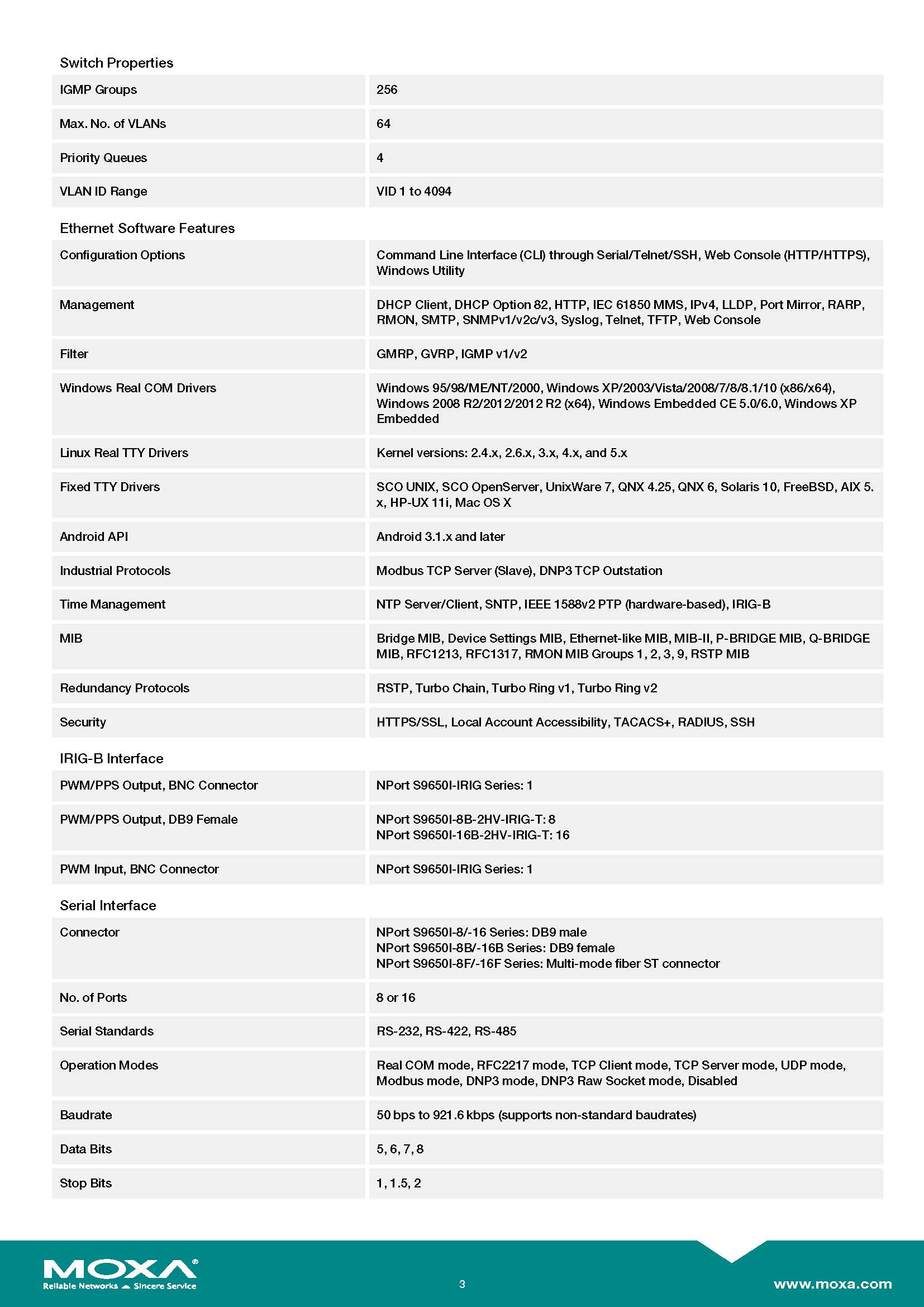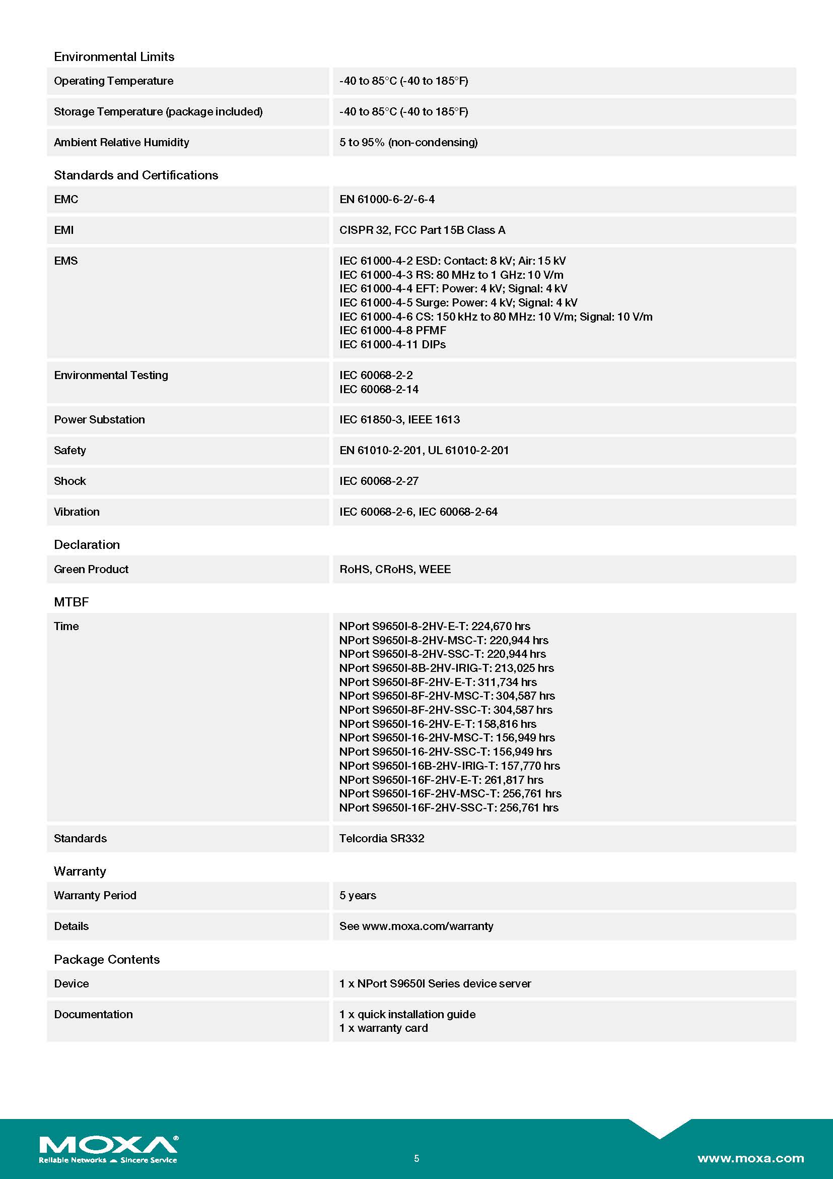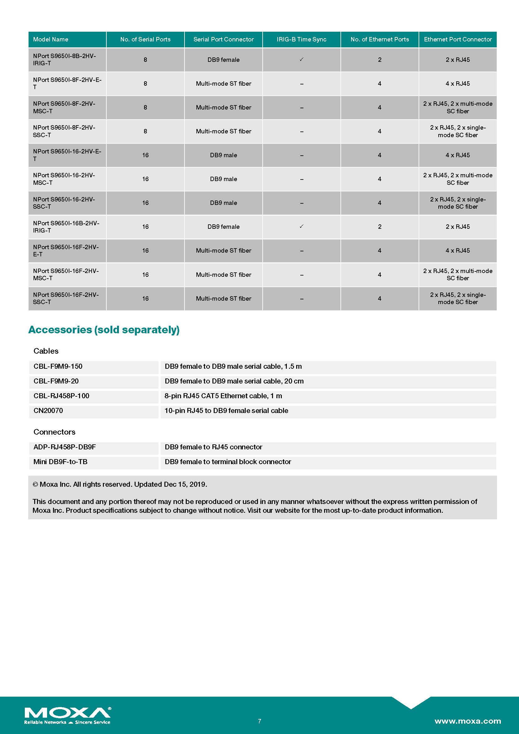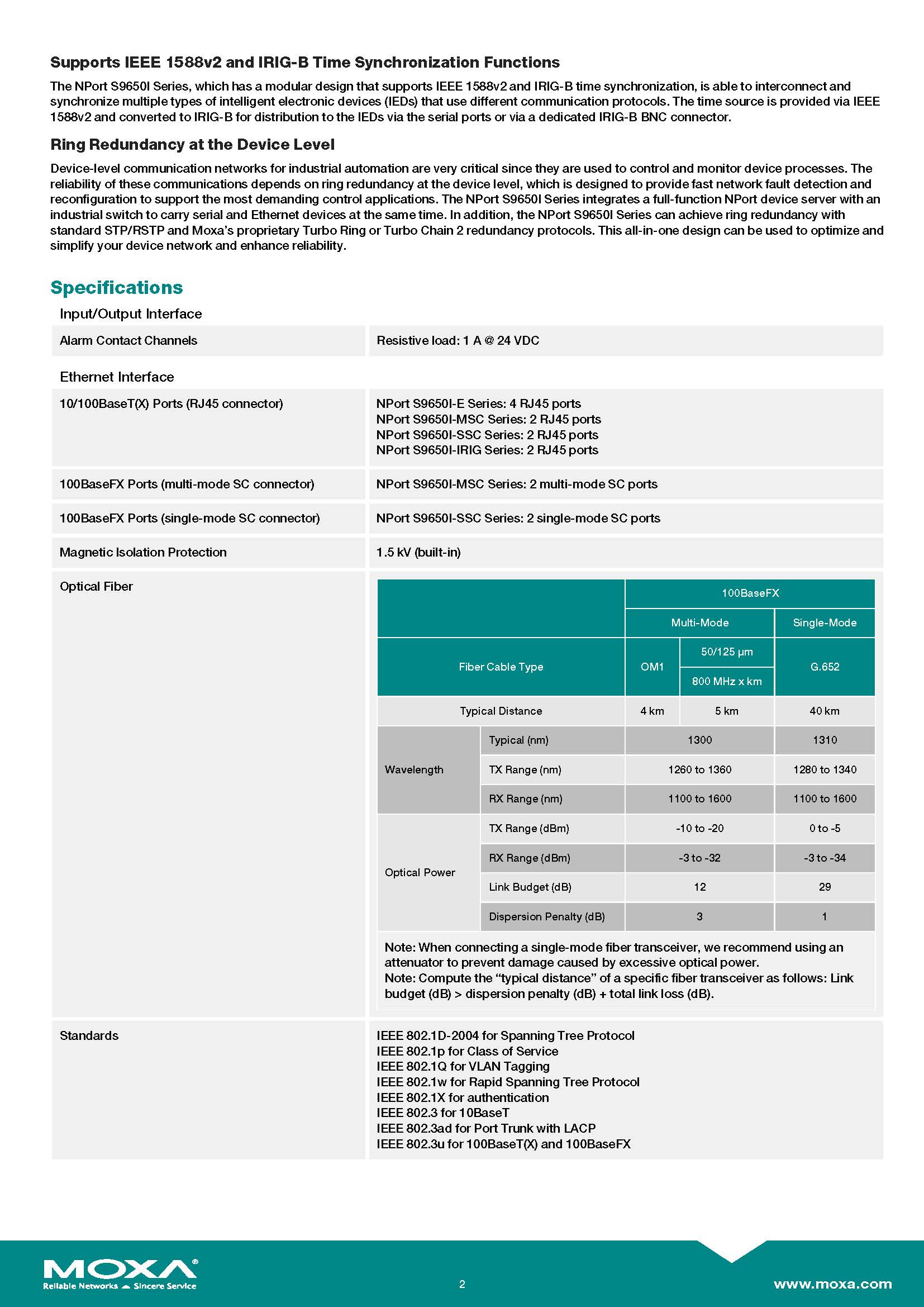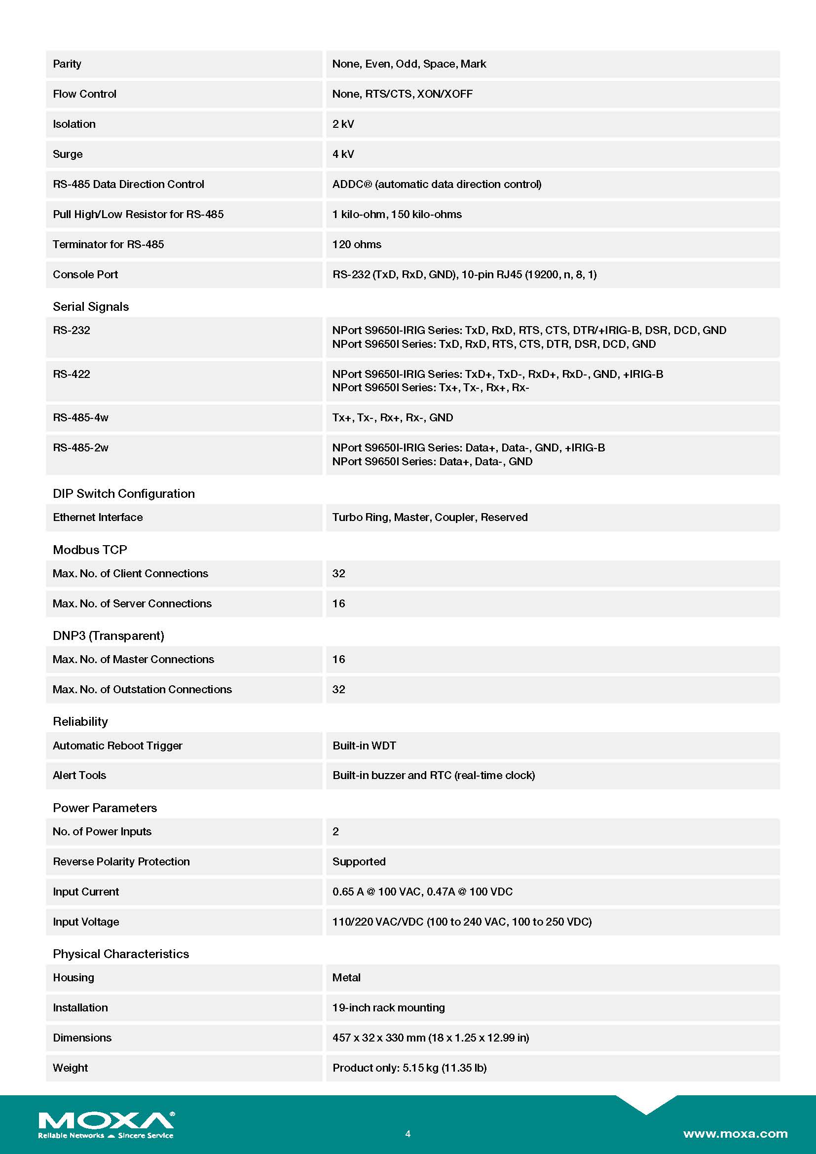 MOXA Combo Device Servers Model : NPort S9650I-8-2HV-E-T 8-port RS-232/422/485 rugged device server, 2 10/100BaseT(X) ports with IEEE 1588v2 support, 88 to 300 VDC or 85 to 264 VAC, -40 to 85°C operating temperature, with 2-port Ethernet RJ45 module ขอราคาพิเศษสำหรับงานโครงการ ติดต่อฝ่ายขาย Line ID : @aimonline ฝ่ายขายโทร: 063-879-9917 ( สินค้ายังไม่รวมภาษีมูลค่าเพิ่ม, ค่าขนส่ง ) เช็คสต๊อกล่าสุดสินค้าก่อนสั่งซื้อ ราคายังไม่รวมค่าติดตั้ง