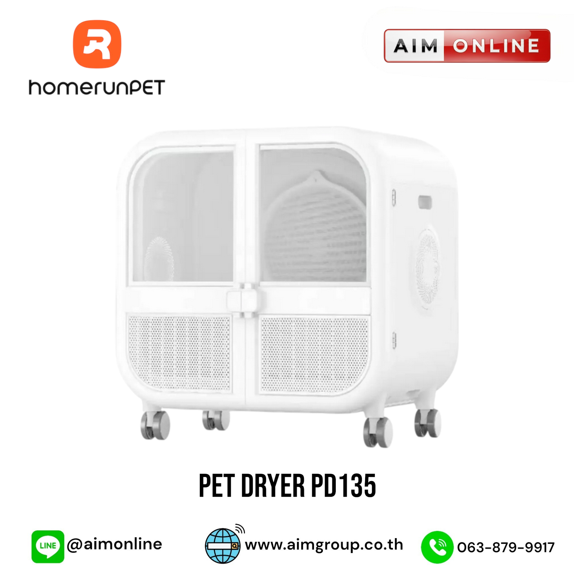 Pet Dryer ตู้เป่าขนสัตว์เลี้ยง รุ่น PD135 ความจุุขนาด 135 ลิตร สามารถรองรับสุนัขและแมวที่มีน้ำหนักไม่เกิน 20 กก. โหมดการเป่าขน 2 โหมดและระดับความแรงลบ 4 ระดับ Comfort Dry Mode และ Quick Dry Mode อุณหภูมิ: DRY MODE:16-40°C;COOL MODE:16-32°C ขอราคาพิเศษสำหรับงานโครงการ ติดต่อฝ่ายขาย Line ID : @aimonline ฝ่ายขายโทร: 063-879-9917 ( สินค้ายังไม่รวมภาษีมูลค่าเพิ่ม, ค่าขนส่ง ) เช็คสต๊อกล่าสุดสินค้าก่อนสั่งซื้อ #SI
