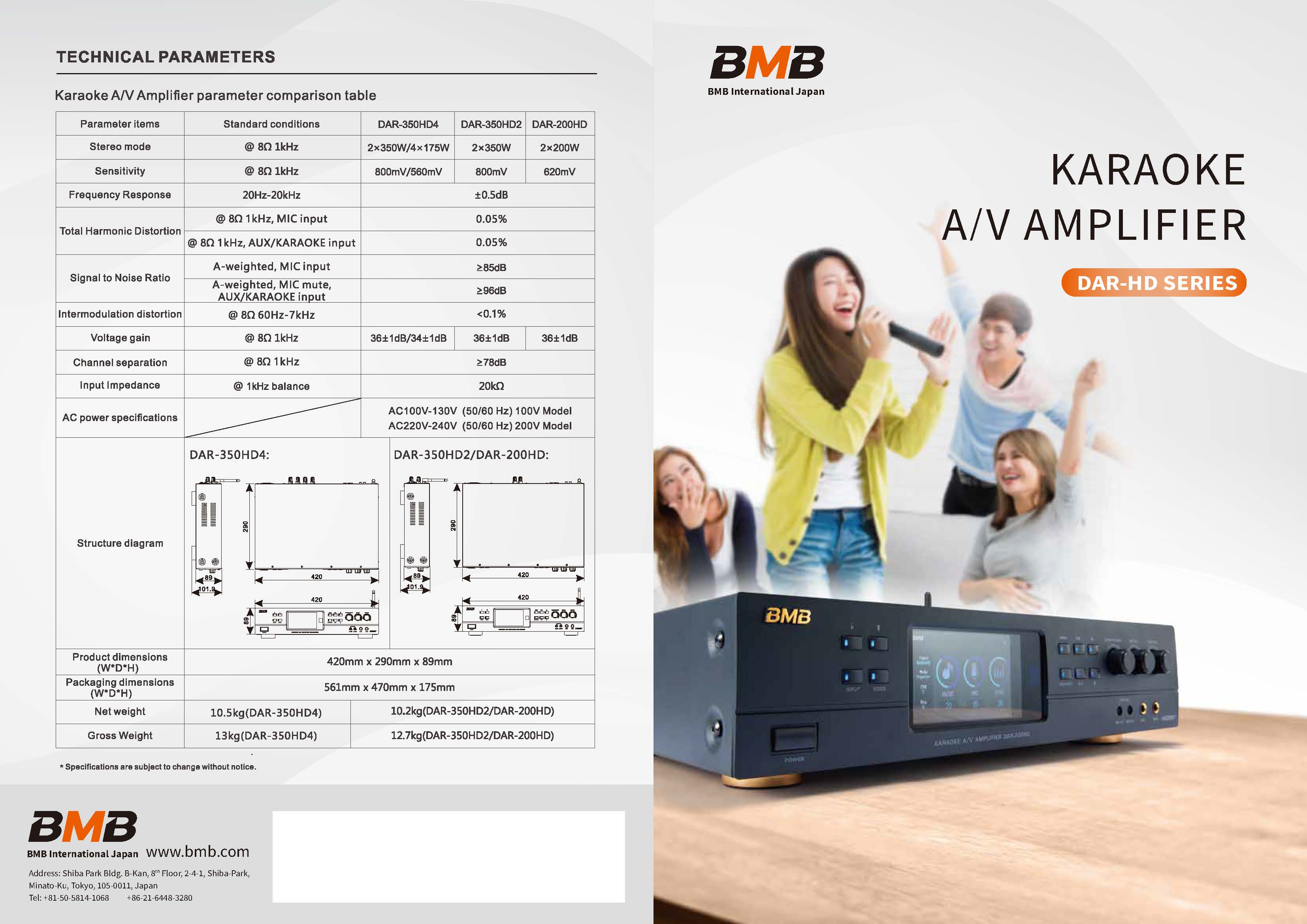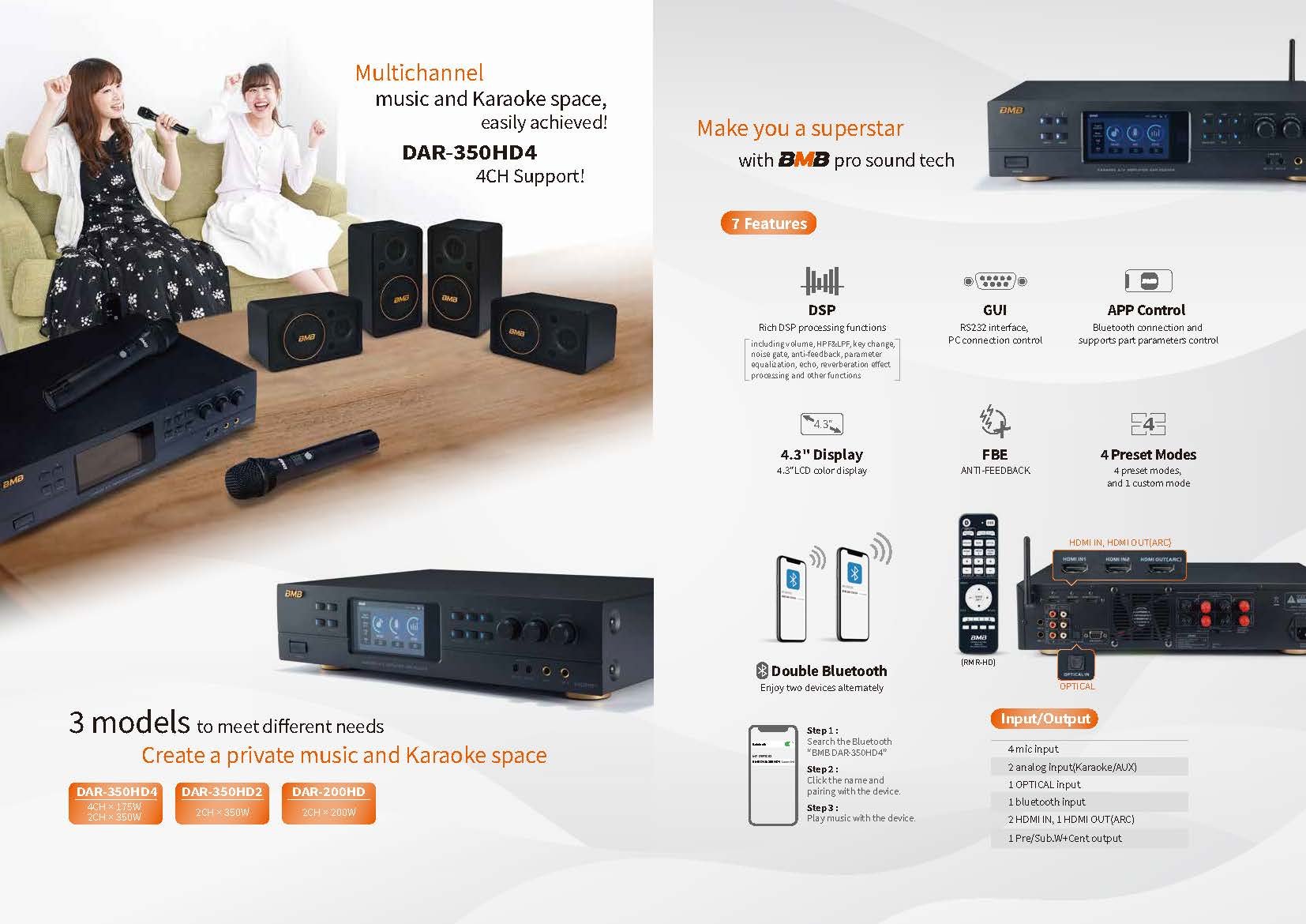 BMB Amplifier รุ่น DAR-200HD เครื่องขยายเสียงแบบ AV Amplifier กำลังขับ 350 วัตต์ X 2 ชาแนล เชื่อมต่อ Bluetooth ได้ 2 Device, ปรับ EQ ไมค์ และเสียงเพลง ปรับ Key เสียงสูงและต่ำได้ 7 ระดับ, ช่องเสียบไมค์ 4 ช่อง, Input 2 Aux, Out 1 Aux, 2 HDMI in, 1 HDMI Out (ARC), หน้าจอแสดงผล, ช่องอ่านไฟล์เสียง Flash Drive, มีรีโมทคอนโทรล, ควบคุมผ่าน App มือถือได้ ขอราคาพิเศษและสอบถามข้อมูลเพิ่มเติมติดต่อ Mobile : 063-879-9917Line ID : @aimonline Tel : 02-088-5290 (สินค้ายังไม่รวมภาษีมูลค่าเพิ่ม,ค่าขนส่ง ,ราคาอาจมีการเปลี่ยนแปลงได้ โดยไม่แจ้งให้ทราบล่วงหน้า) #SI