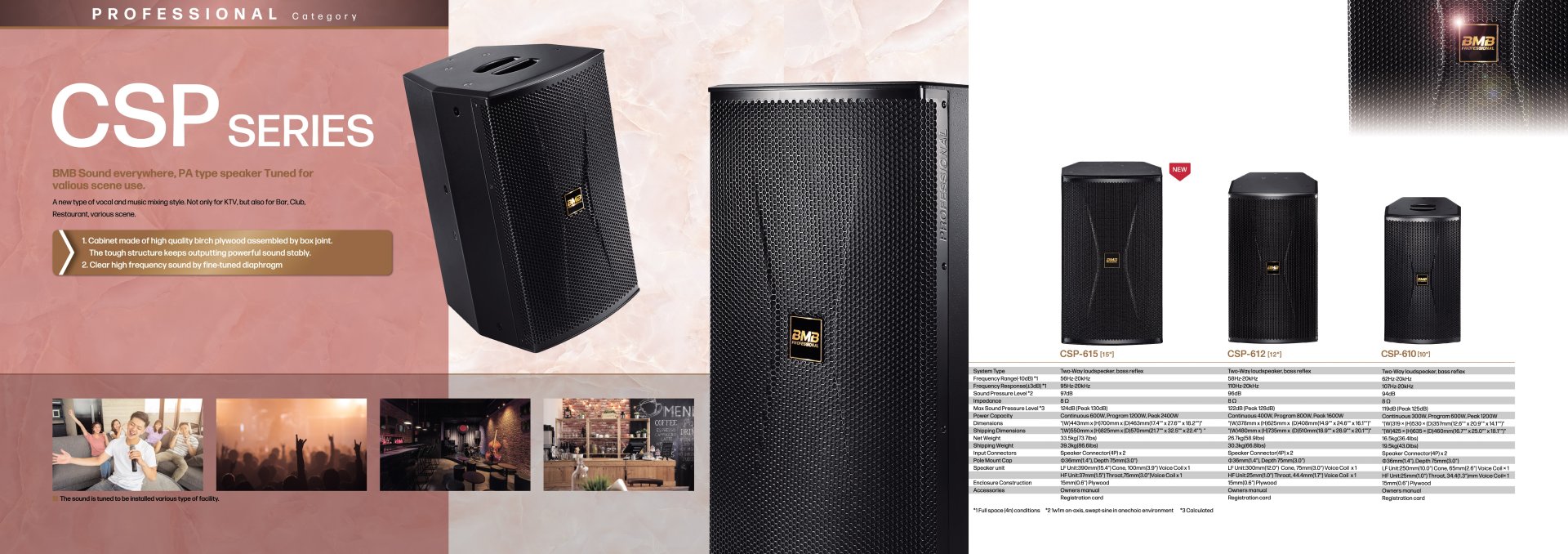 BMB Speaker รุ่น CSP-615 ลำโพง PA (Public Address) แบบ 2 ทาง ขนาดดอกลำโพงหลักขนาด 15 นิ้ว กำลังขับ Rating Input 600 วัตต์ รับกำลังสูงสุด Max Input 2400 วัตต์, ความต้านทาน 8 โอห์ม, หัวต่อ SPK4 X 2, ตอบสนองความถี่ 56 - 20,000 Hz, ค่าความไว 97 dB/W/m (สินค้าต่อ 1 ชิ้น) ขอราคาพิเศษและสอบถามข้อมูลเพิ่มเติมติดต่อ Mobile : 063-879-9917Line ID : @aimonline Tel : 02-088-5290 (สินค้ายังไม่รวมภาษีมูลค่าเพิ่ม,ค่าขนส่ง ,ราคาอาจมีการเปลี่ยนแปลงได้ โดยไม่แจ้งให้ทราบล่วงหน้า) #SI