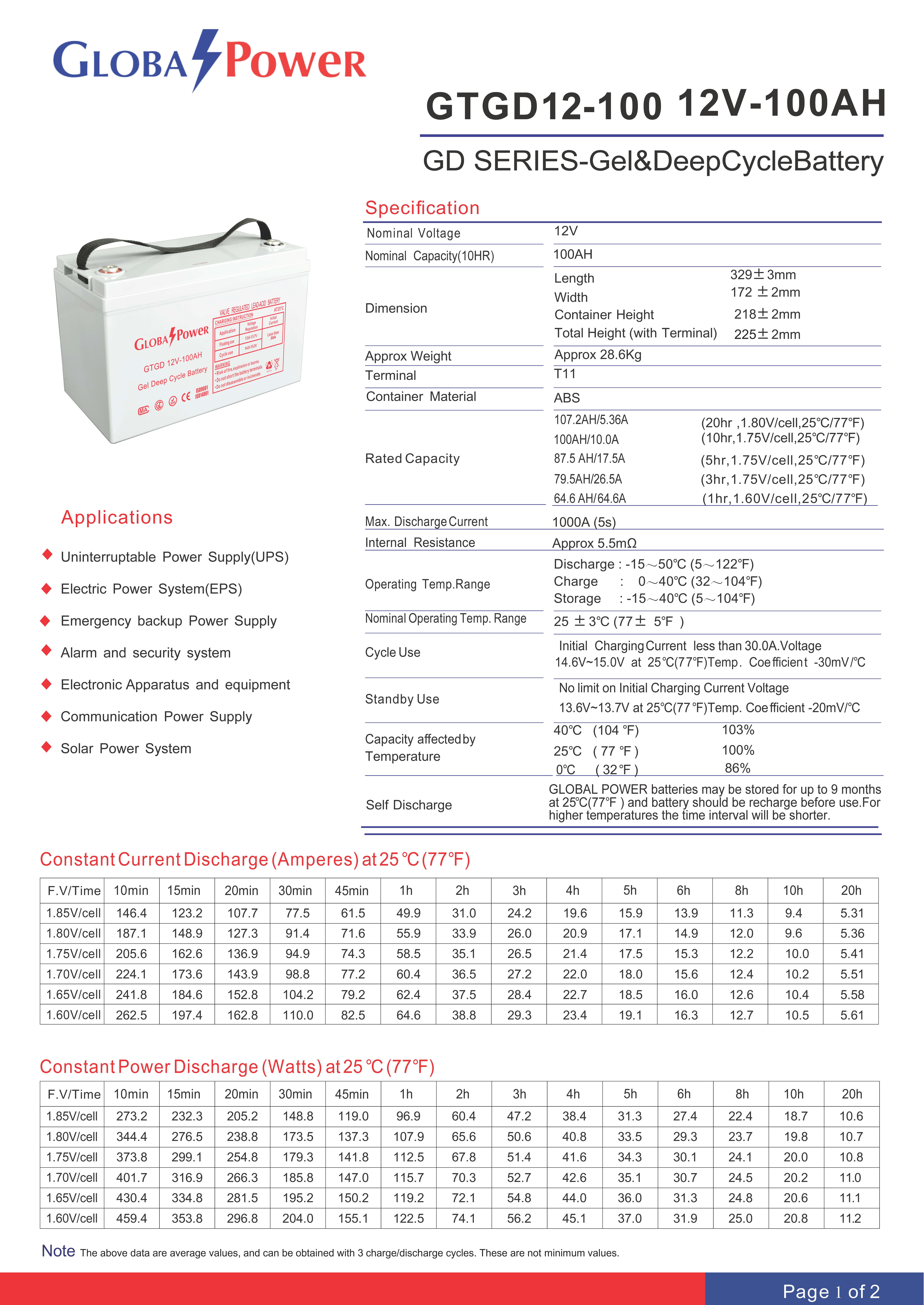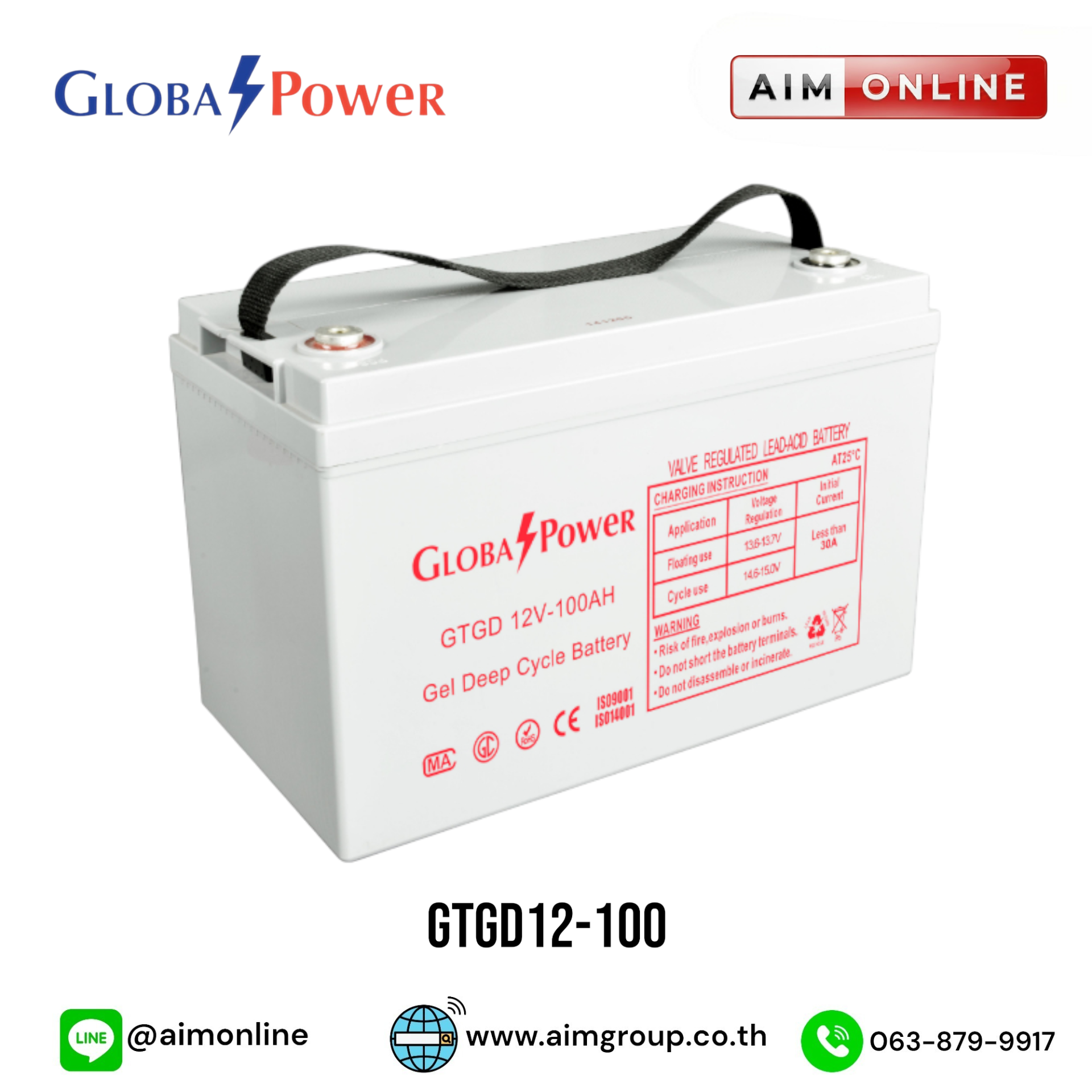 GLOBAL POWER GEL Deep Cycle Battery DC12V 100AH รุ่น GTGD12-100 ขอราคาพิเศษและสอบถามข้อมูลเพิ่มเติมติดต่อ Mobile : 063-879-9917Line ID : @aimonline Tel : 02-088-5290 (สินค้ายังไม่รวมภาษีมูลค่าเพิ่ม,ค่าขนส่ง ,ราคาอาจมีการเปลี่ยนแปลงได้ โดยไม่แจ้งให้ทราบล่วงหน้า) #SI