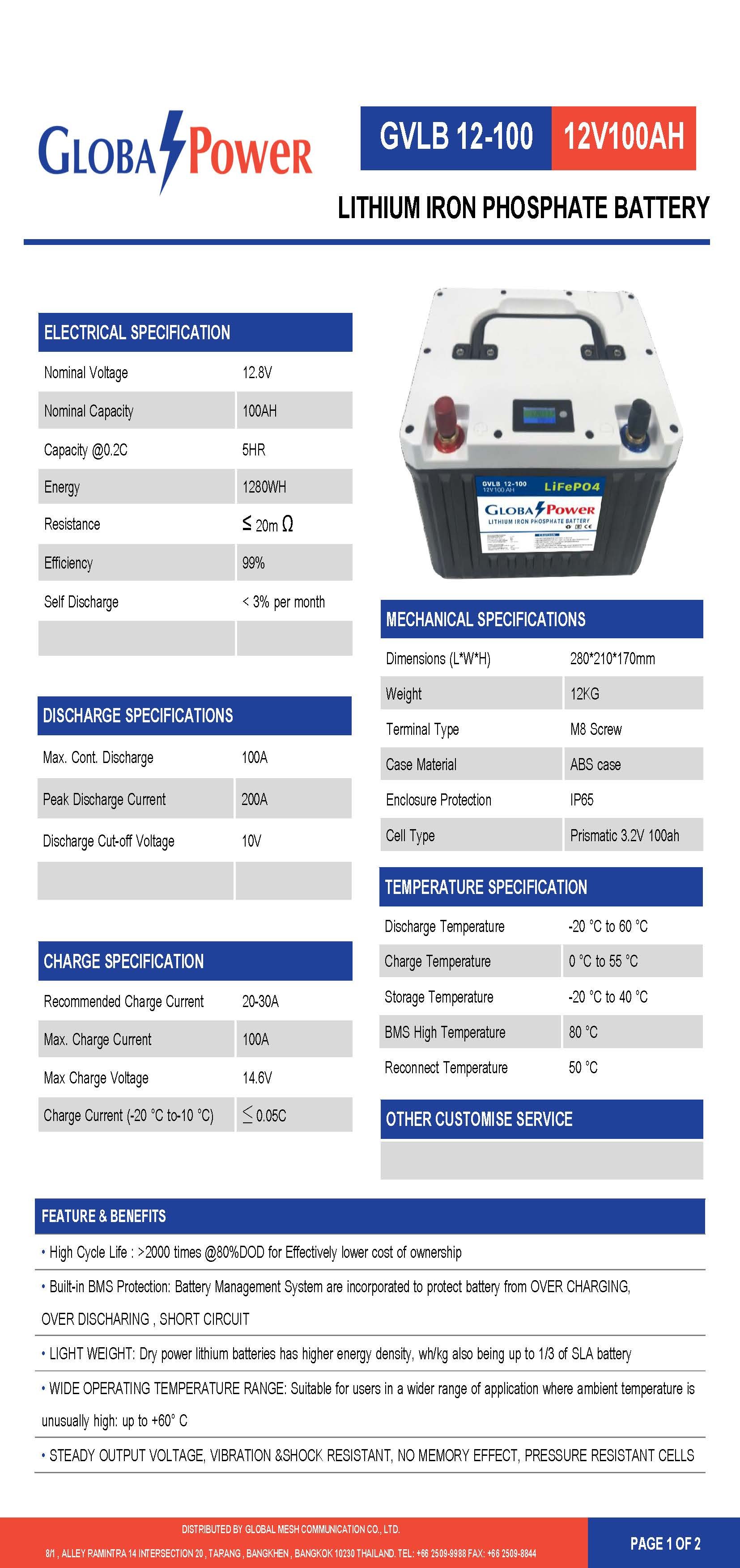 GLOBAL POWER Lithium battery Series DC12V 100AH รุ่น GVLB12-100 ขอราคาพิเศษและสอบถามข้อมูลเพิ่มเติมติดต่อ Mobile : 063-879-9917Line ID : @aimonline Tel : 02-088-5290 (สินค้ายังไม่รวมภาษีมูลค่าเพิ่ม,ค่าขนส่ง ,ราคาอาจมีการเปลี่ยนแปลงได้ โดยไม่แจ้งให้ทราบล่วงหน้า) #SI