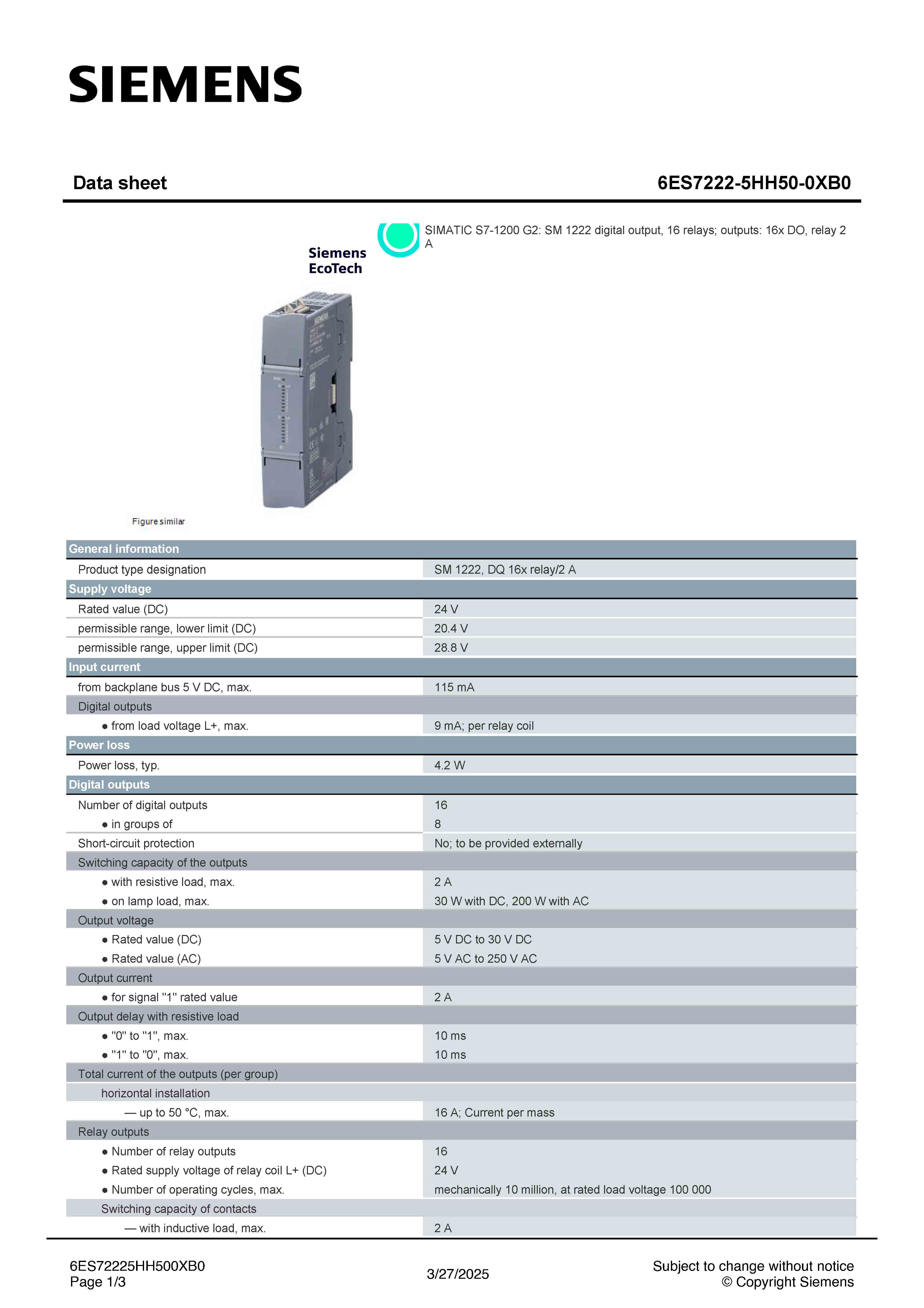SIEMENS Programmable Logic Controller (PLC) SIMATIC S7-1200 G2:SM1222,16DO,relay รุ่น 6ES7222-5HH50-0XB0 ขอราคาพิเศษและสอบถามข้อมูลเพิ่มเติมติดต่อ Mobile : 063-879-9917Line ID : @aimonline Tel : 02-088-5290 (สินค้ายังไม่รวมภาษีมูลค่าเพิ่ม,ค่าขนส่ง ,ราคาอาจมีการเปลี่ยนแปลงได้ โดยไม่แจ้งให้ทราบล่วงหน้า) # SMN-72225HH500XB0