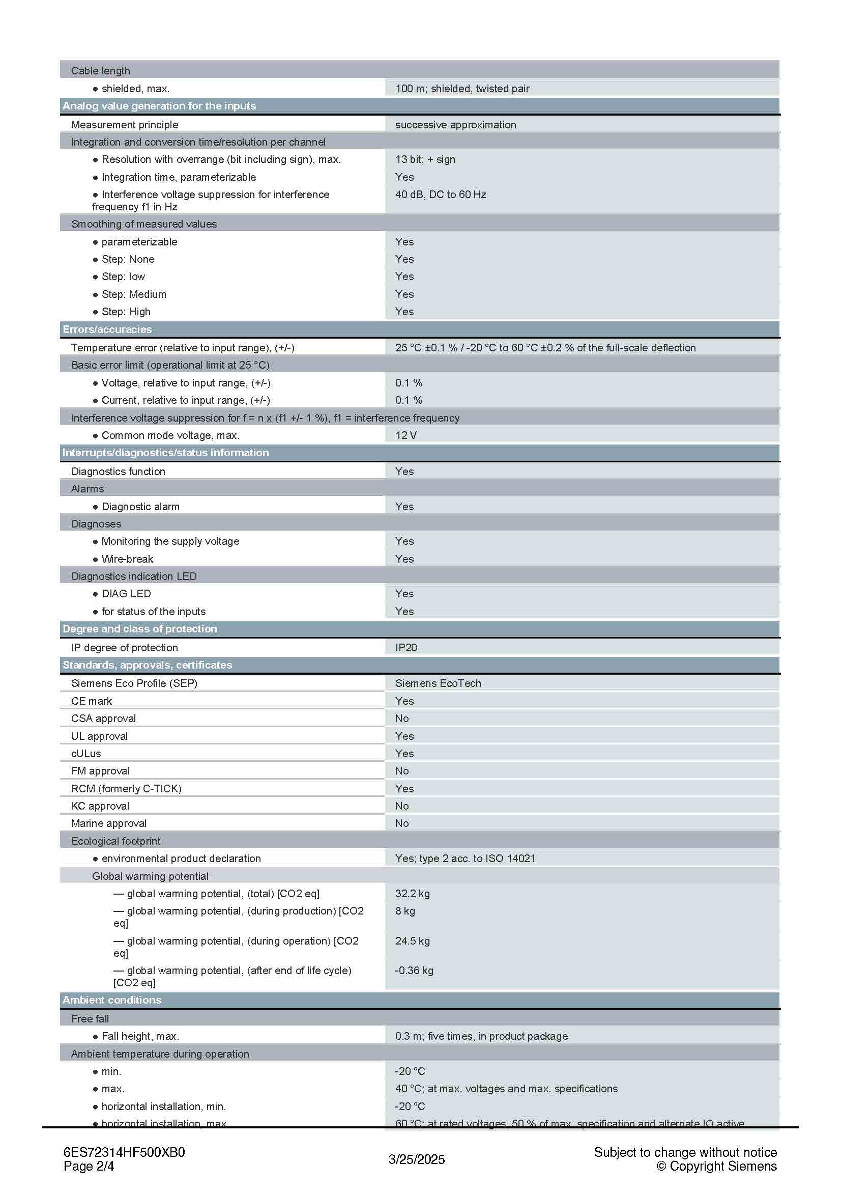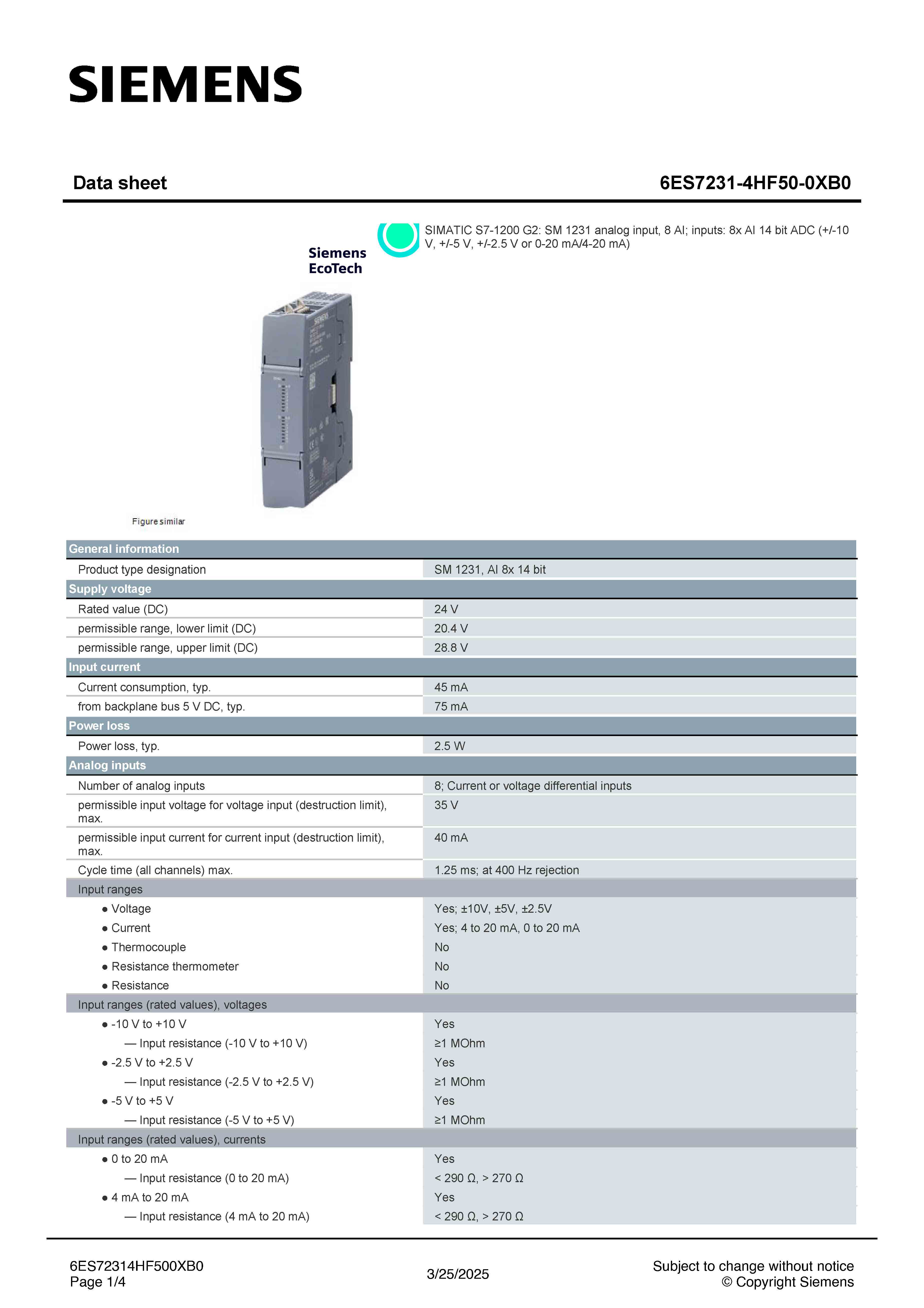 SIEMENS Programmable Logic Controller (PLC) SIMATIC S7-1200 G2:SM1231,8AI รุ่น 6ES7231-4HF50-0XB0 ขอราคาพิเศษและสอบถามข้อมูลเพิ่มเติมติดต่อ Mobile : 063-879-9917Line ID : @aimonline Tel : 02-088-5290 (สินค้ายังไม่รวมภาษีมูลค่าเพิ่ม,ค่าขนส่ง ,ราคาอาจมีการเปลี่ยนแปลงได้ โดยไม่แจ้งให้ทราบล่วงหน้า) # SMN-72314HF500XB0