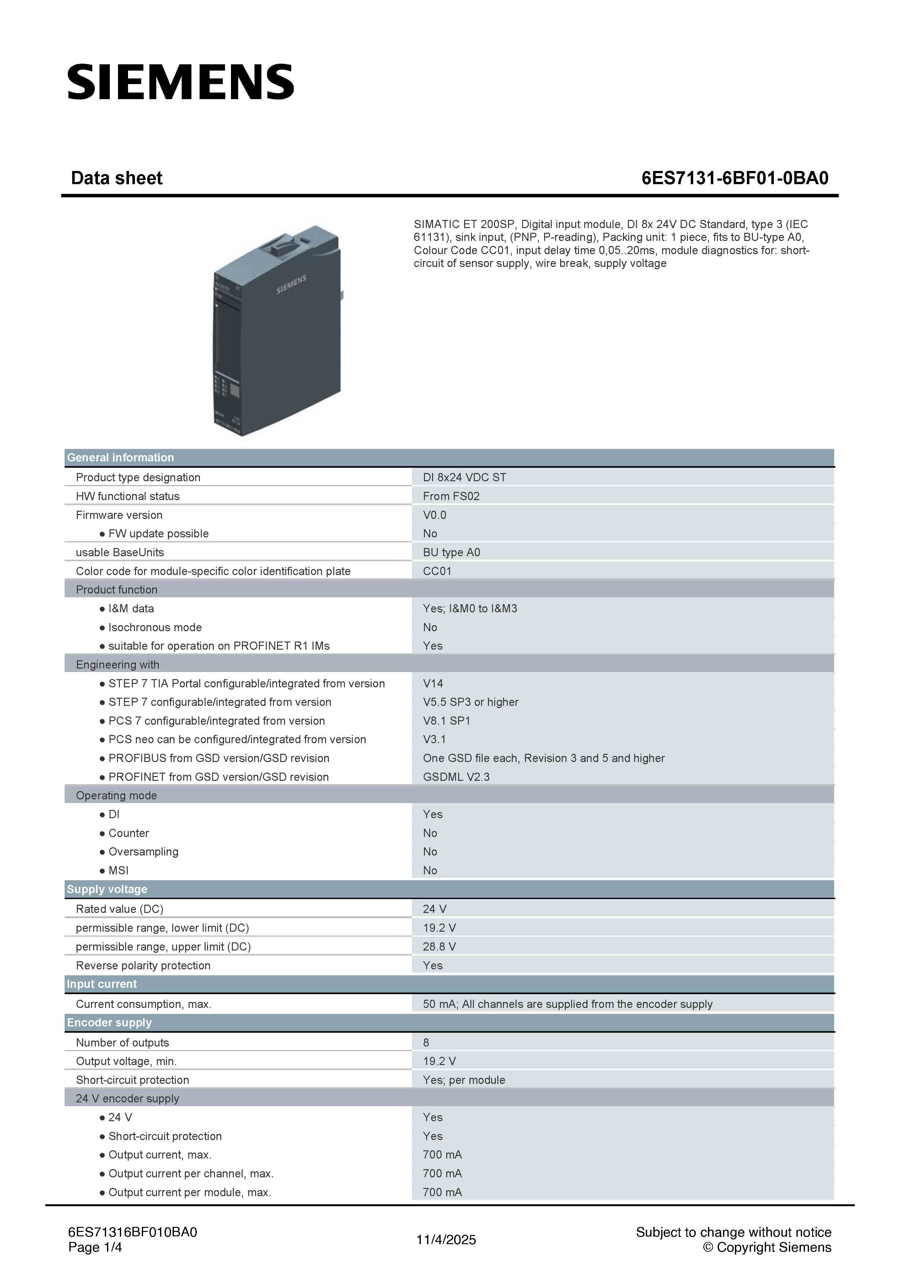 SIEMENS SIMATIC ET 200SP Interface Module รุ่น 6ES7131-6BF01-0BA0 ขอราคาพิเศษและสอบถามข้อมูลเพิ่มเติมติดต่อ Mobile : 063-879-9917Line ID : @aimonline Tel : 02-088-5290 (สินค้ายังไม่รวมภาษีมูลค่าเพิ่ม,ค่าขนส่ง ,ราคาอาจมีการเปลี่ยนแปลงได้ โดยไม่แจ้งให้ทราบล่วงหน้า) # SMN-71316BF010BA0
