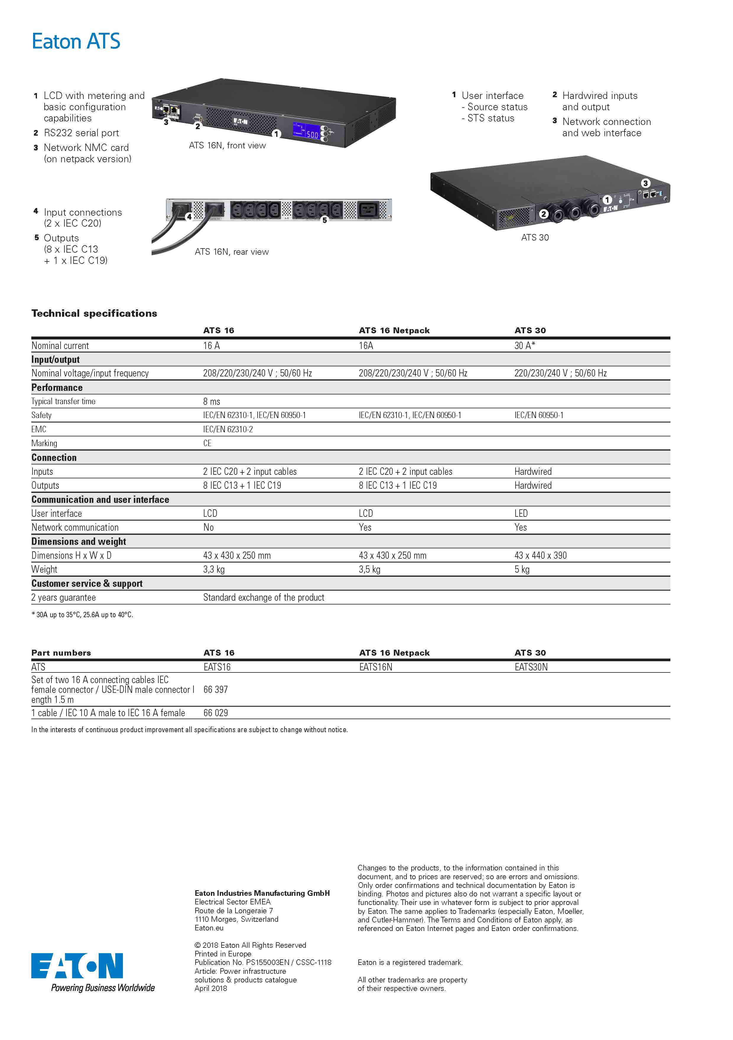 EATON ATS (Automatic Transfer Switch) Nominal current 16A รุ่น ATS16 : 9001-5018 ขอราคาพิเศษและสอบถามข้อมูลเพิ่มเติมติดต่อ Mobile : 063-879-9917Line ID : @aimonline Tel : 02-088-5290 (สินค้ายังไม่รวมภาษีมูลค่าเพิ่ม,ค่าขนส่ง ,ราคาอาจมีการเปลี่ยนแปลงได้ โดยไม่แจ้งให้ทราบล่วงหน้า) # SI