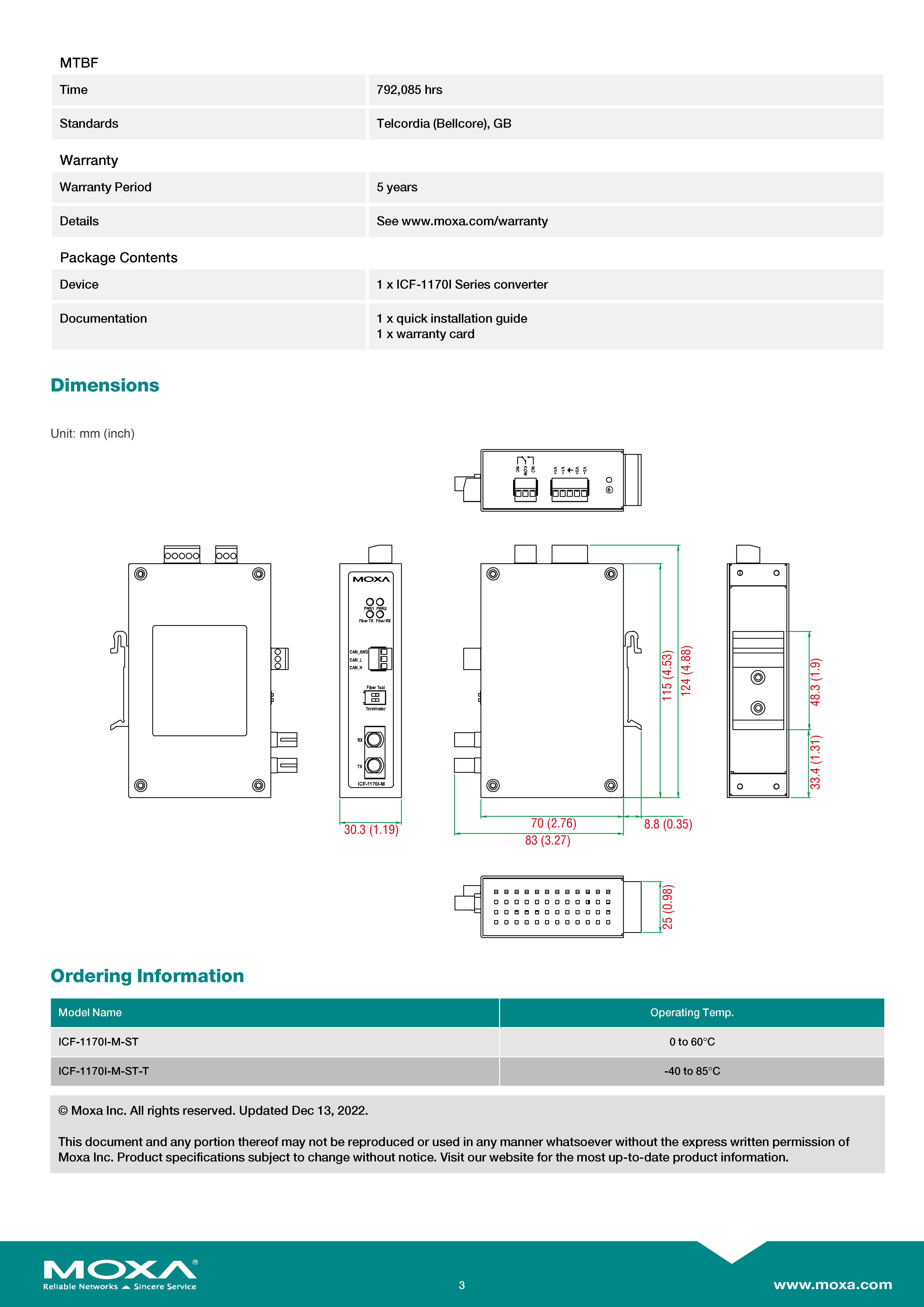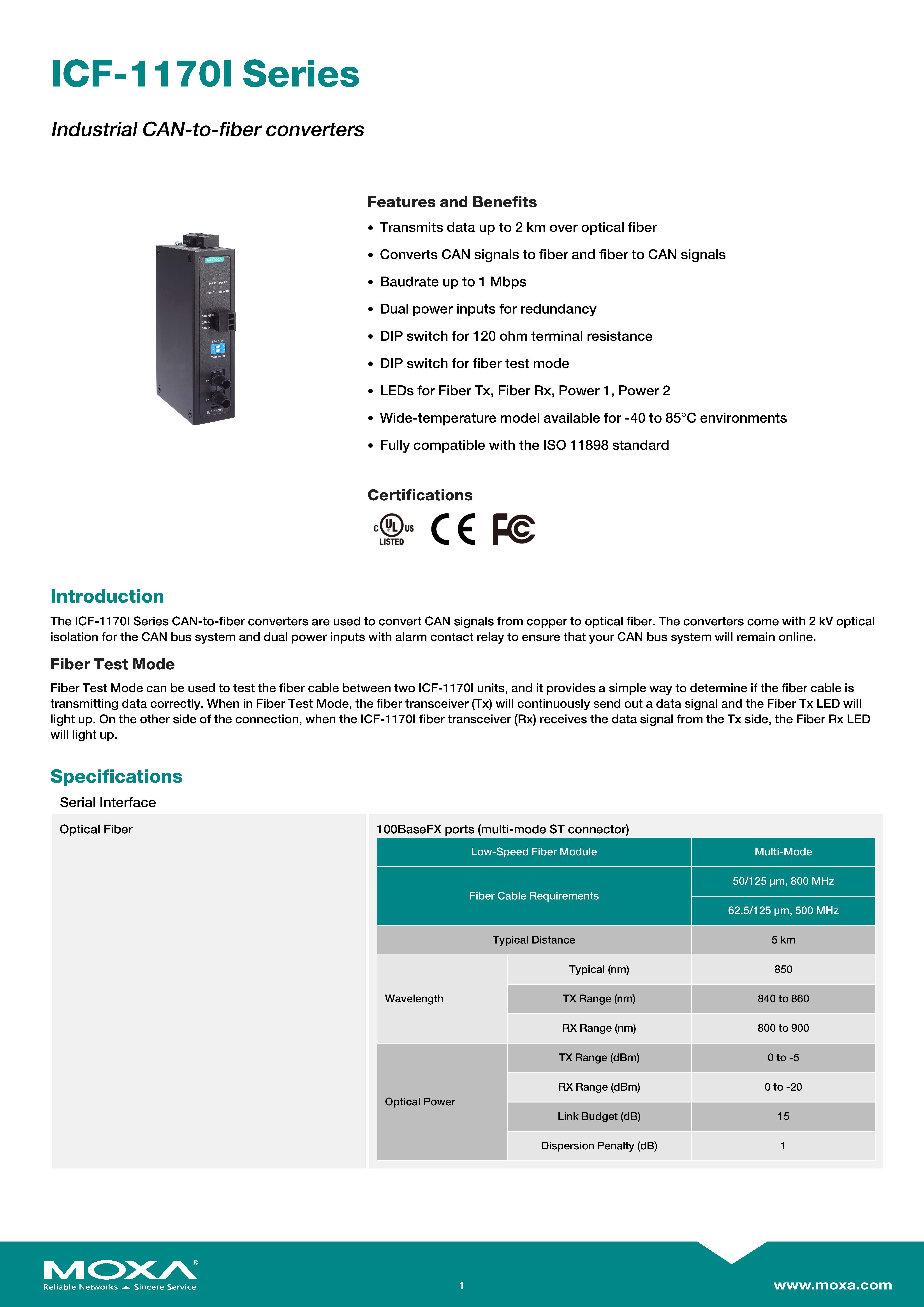 สินค้ายี่ห้อ MOXA รุ่น ICF-1170I-M-ST รายละเอียดสินค้า ตัวแปลงสัญญาณระดับอุตสาหกรรม (Industrial-grade Converter) ที่ออกแบบมาเพื่อเปลี่ยนสัญญาณจาก RS-232/422/485 ให้เป็น Fiber Optic ✅ ขอราคาพิเศษสำหรับงานโครงการติดต่อ Mobile : 063-879-9917Line ID : @aimonline