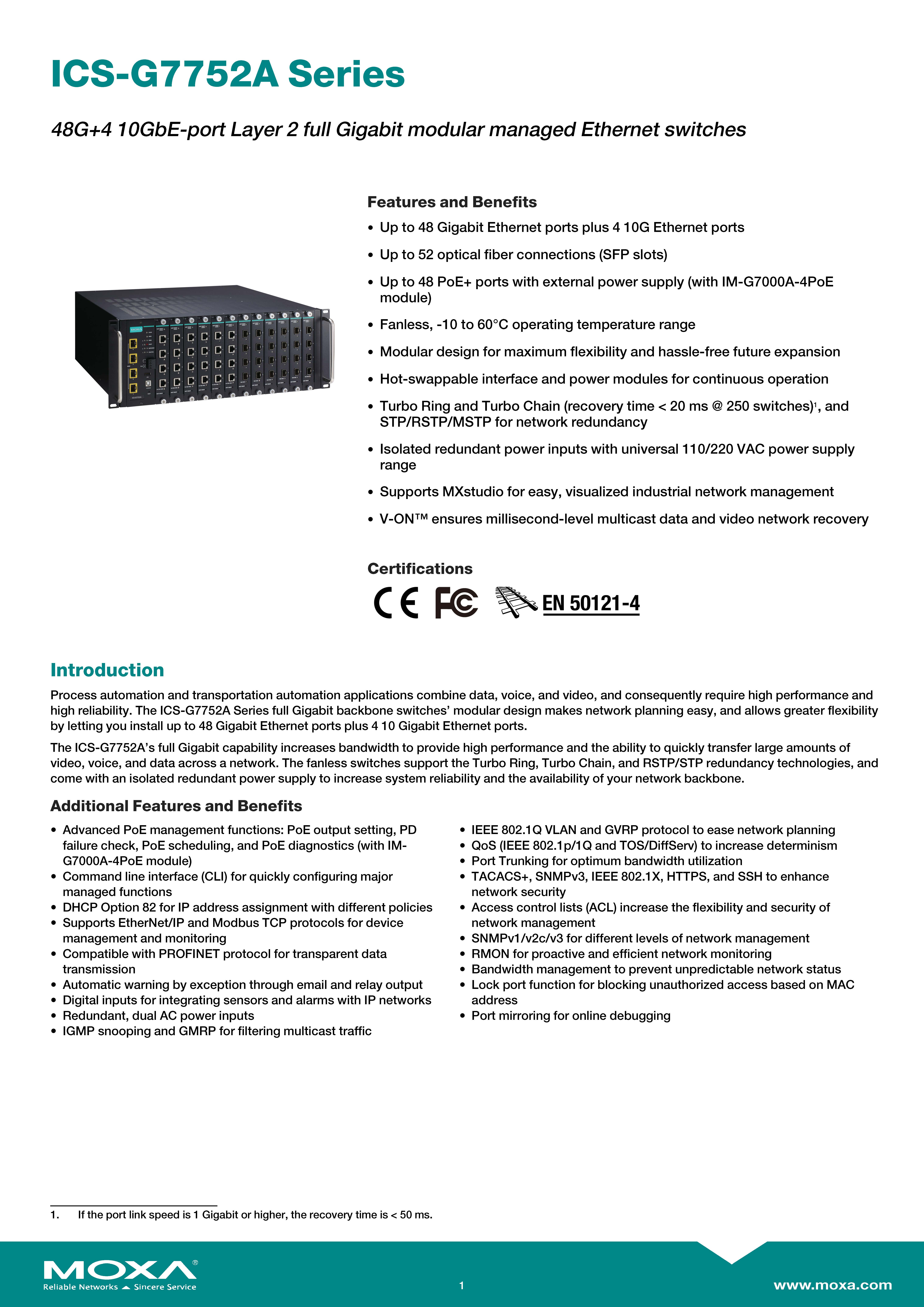 สินค้ายี่ห้อ MOXA รุ่น ICS-G7752A-4XG-HV-HV รายละเอียดสินค้า Industrial Layer 2 Core Switch แบบจัดการได้ (Managed) ที่มาพร้อมความจุพอร์ตมหาศาลถึง 48 ช่อง Gigabit และ 4 ช่อง 10GbE SFP+ สำหรับการส่งข้อมูลความเร็วสูง รองรับระบบจ่ายไฟสำรองแบบ High Voltage คู่ (Dual HV) เพื่อความต่อเนื่องของระบบเครือข่ายขนาดใหญ่และศูนย์ข้อมูลอุตสาหกรรม ✅ ขอราคาพิเศษสำหรับงานโครงการติดต่อ Mobile : 063-879-9917 Line ID @aimonline