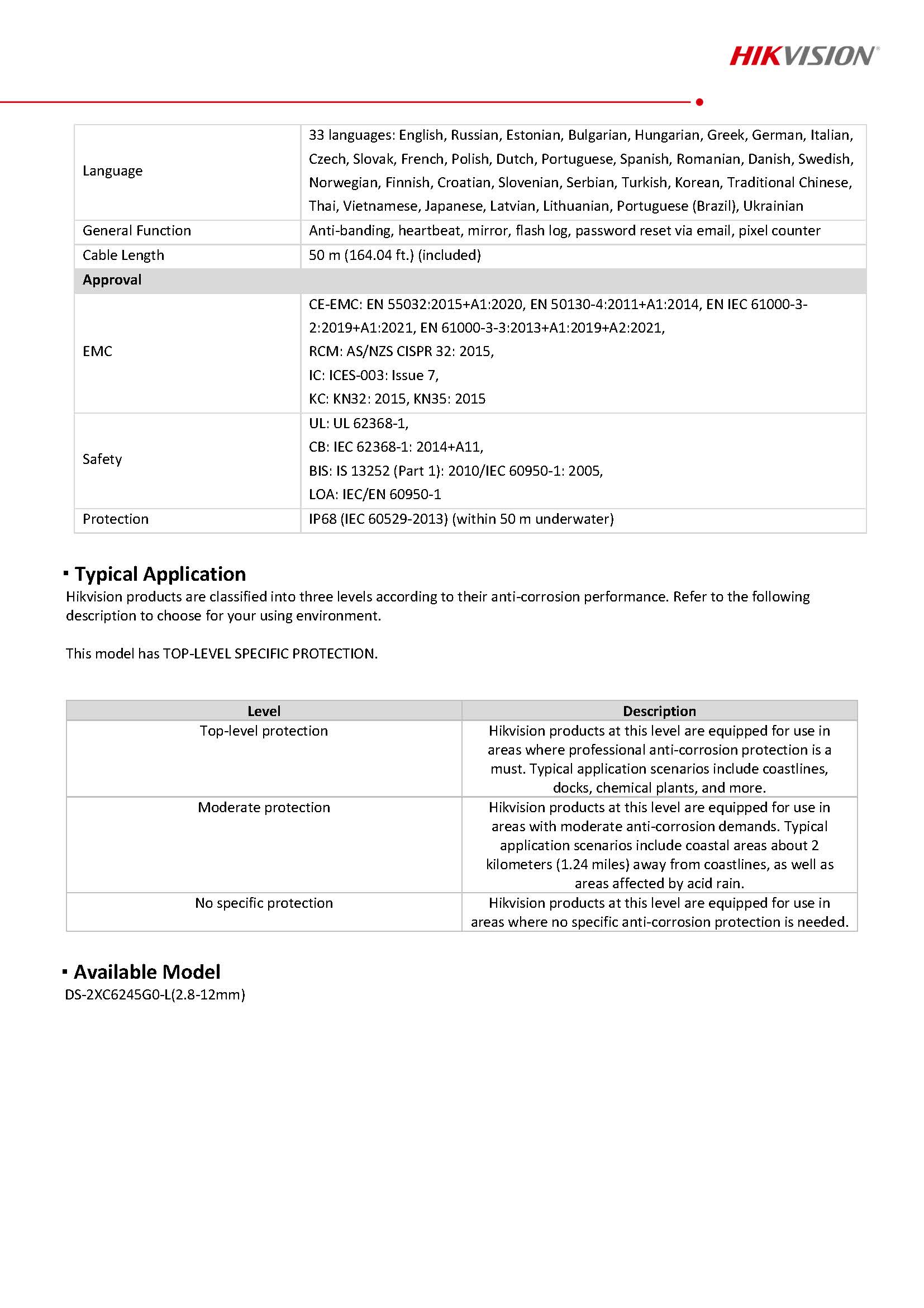 HIKVISION รุ่น DS-2XC6245G0-L