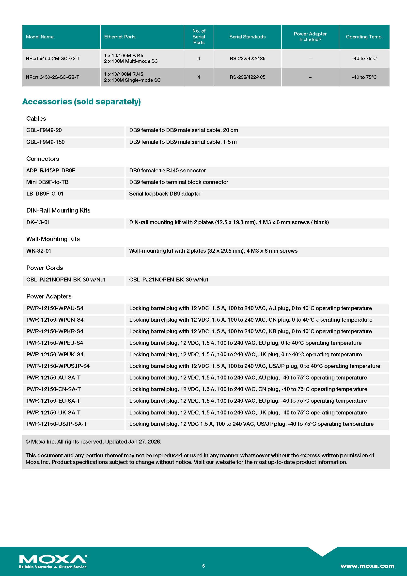 สินค้ายี่ห้อ MOXA รุ่น NPort 6450-G2 รายละเอียดสินค้า เซิร์ฟเวอร์แปลงสัญญาณซีเรียลระดับอุตสาหกรรม (Secure Terminal Server) แบบ 4 พอร์ต โดดเด่นด้วยการเป็นอุปกรณ์ซีเรียลเซิร์ฟเวอร์รุ่นแรกของโลกที่ผ่านมาตรฐานความปลอดภัยทางไซเบอร์สูงสุดระดับ IEC 62443-4-2 Level 2 มาพร้อมพอร์ตเชื่อมต่อ RS-232/422/485 จำนวน 4 ช่อง และพอร์ตเครือข่าย Fast Ethernet รองรับการเข้ารหัสข้อมูลขั้นสูงแบบ TLS v1.3 และ SSH พร้อมระบบ Secure Boot ในตัว ภายใต้ตัวเรือนโลหะกะทัดรัดที่ทนทานต่ออุณหภูมิการทำงาน -10 ถึง 60°C ตอบโจทย์การเชื่อมต่ออุปกรณ์ซีเรียลแบบดั้งเดิม (Legacy Devices) เข้าสู่ระบบเครือข่ายอุตสาหกรรมยุคใหม่ได้อย่างราบรื่นและปลอดภัยไร้กังวลจากการถูกโจมตีทางไซเบอร์ ✅ ขอราคาพิเศษสำหรับงานโครงการติดต่อ Mobile : 063-879-9917 Line ID @aimonline *ราคาสินค้าอาจจะมีการเปลี่ยนแปลงโดยไม่แจ้งให้ทราบล่วงหน้า รบกวนติดต่อฝ่ายขายเพื่ออัพเดทราคา