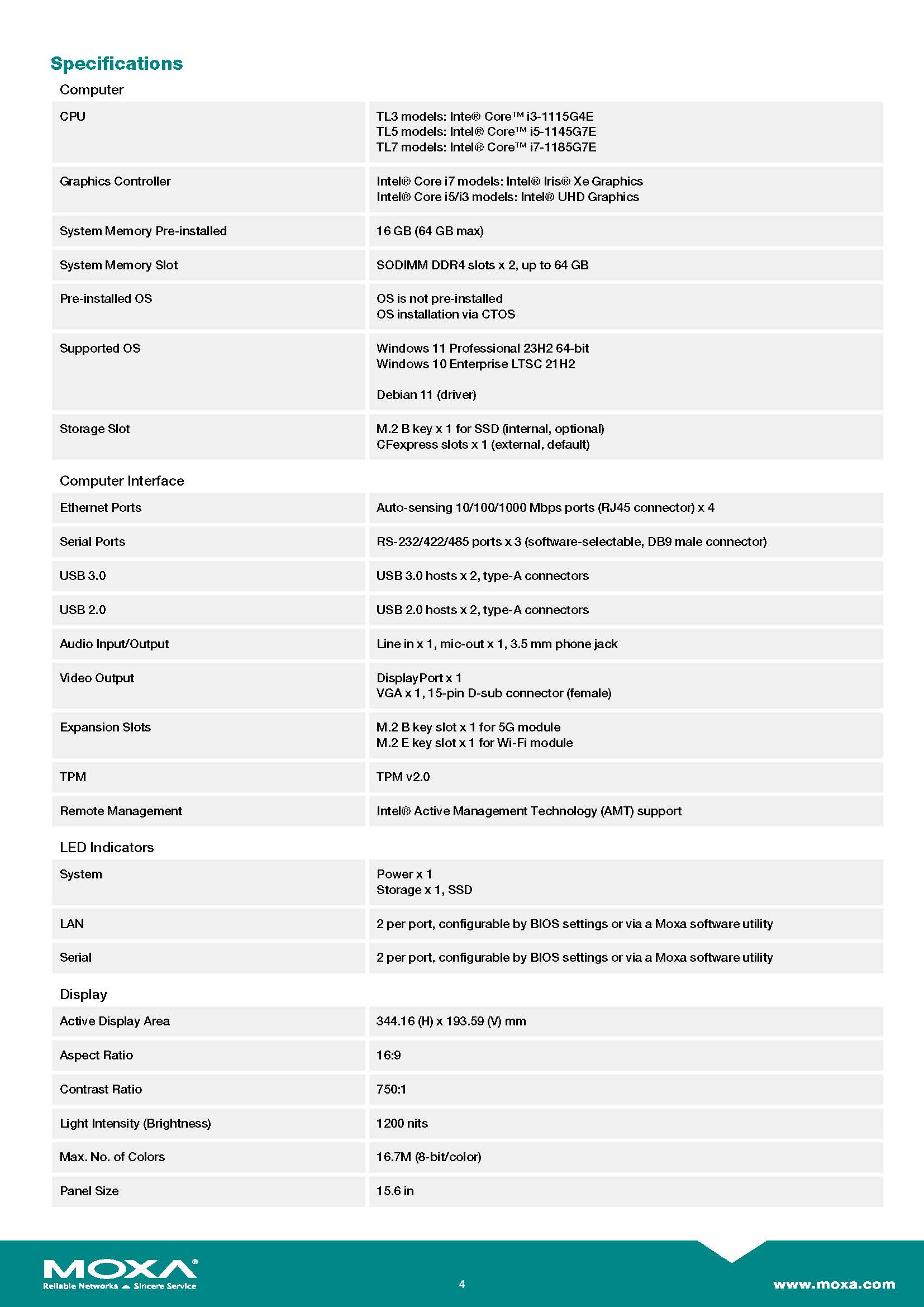 MOXA รุ่น EXPC-F2150W-TL3-DC