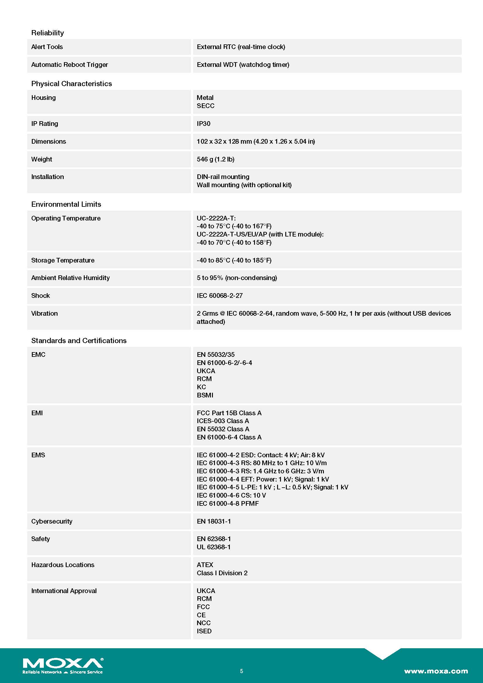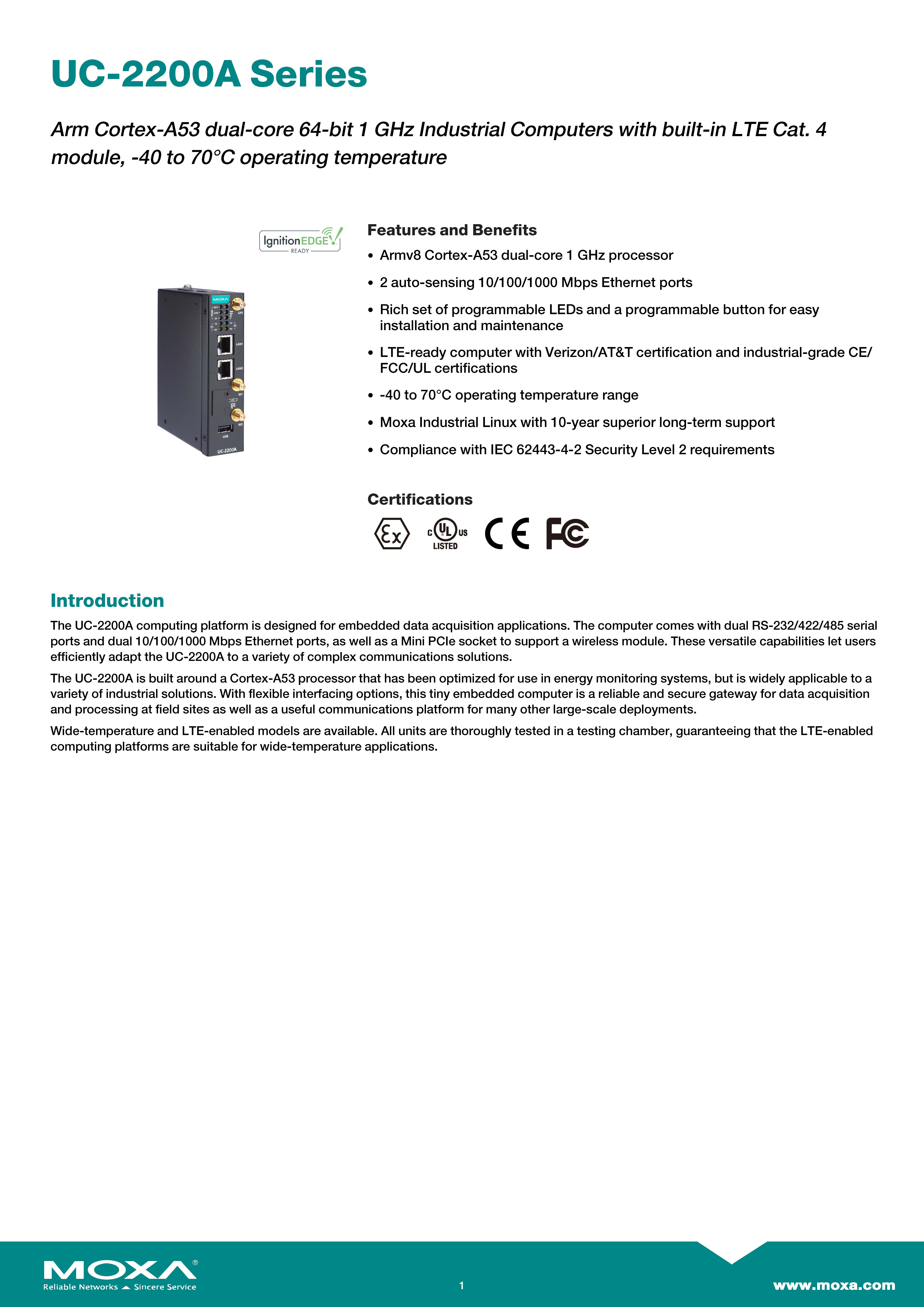 สินค้ายี่ห้อ MOXA รุ่น UC-2222A-T รายละเอียดสินค้า คอมพิวเตอร์ฝังตัวระดับอุตสาหกรรม (Arm-Based Industrial Embedded Computer) ขับเคลื่อนด้วยหน่วยประมวลผล Armv8 Cortex-A53 Dual-core 1 GHz พร้อมแรม 2 GB และระบบปฏิบัติการ Moxa Industrial Linux ในตัว โดดเด่นด้วยพอร์ตเชื่อมต่อเครือข่าย Gigabit Ethernet 2 ช่อง และพอร์ตซีเรียล (RS-232/422/485) 2 ช่อง พร้อมสล็อต Mini PCIe สำหรับเพิ่มโมดูลสื่อสารไร้สาย ภายใต้ตัวเรือนโลหะกะทัดรัดที่ออกแบบมาให้ทนทานต่ออุณหภูมิสุดขั้วตั้งแต่ -40 ถึง 75°C (-T) ตอบโจทย์การใช้งานเป็นเกตเวย์รวบรวมข้อมูล (Data Acquisition) สำหรับระบบตรวจสอบพลังงานและโซลูชัน IIoT หน้างานได้อย่างมีเสถียรภาพ และปลอดภัยสูงสุดด้วยชิป TPM 2.0 ในตัว ✅ ขอราคาพิเศษสำหรับงานโครงการติดต่อ Mobile : 063-879-9917 Line ID @aimonline *ราคาสินค้าอาจจะมีการเปลี่ยนแปลงโดยไม่แจ้งให้ทราบล่วงหน้า กรุณาติดต่อฝ่ายขายเพื่ออัพเดทราคาทราคา